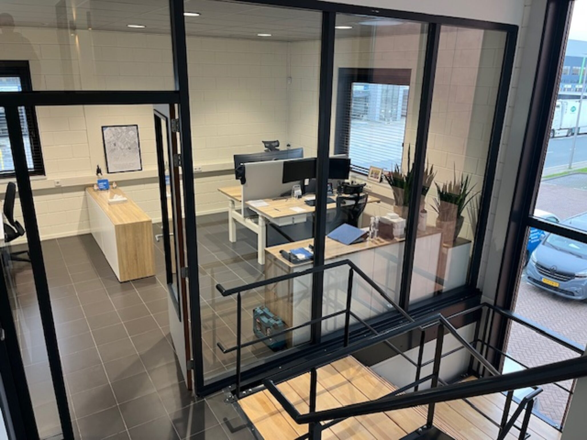 Bent u op zoek naar een moderne kantoorruimte op een uitstekend bereikbare locatie? Deze hoogwaardige unit biedt alles wat u nodig heeft voor uw bedrijf. De unit heeft een entree op de begane grond en op de verdieping een kantoorruimte van ca. 112 m2. Er zijn 2 eigen parkeerplaatsen voor het pand gelegen.
