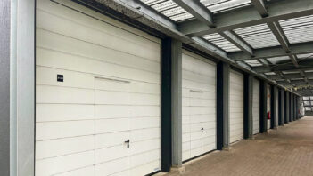 Compacte opslagruimte in modern bedrijfsverzamelgebouw.