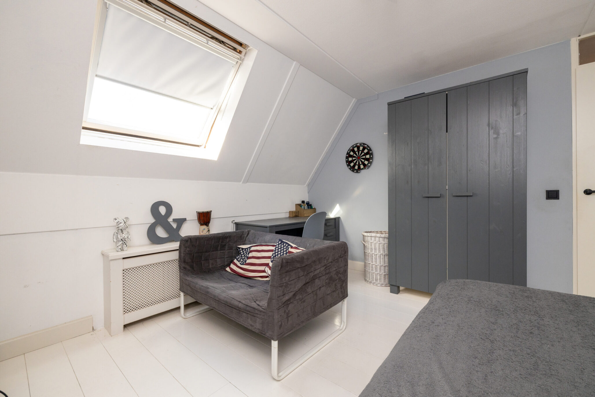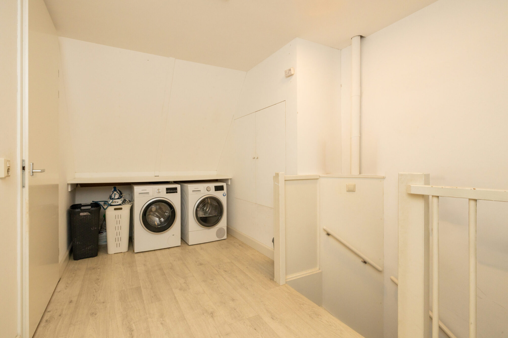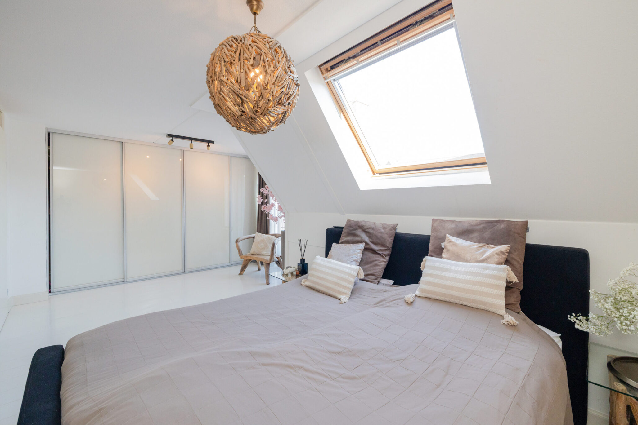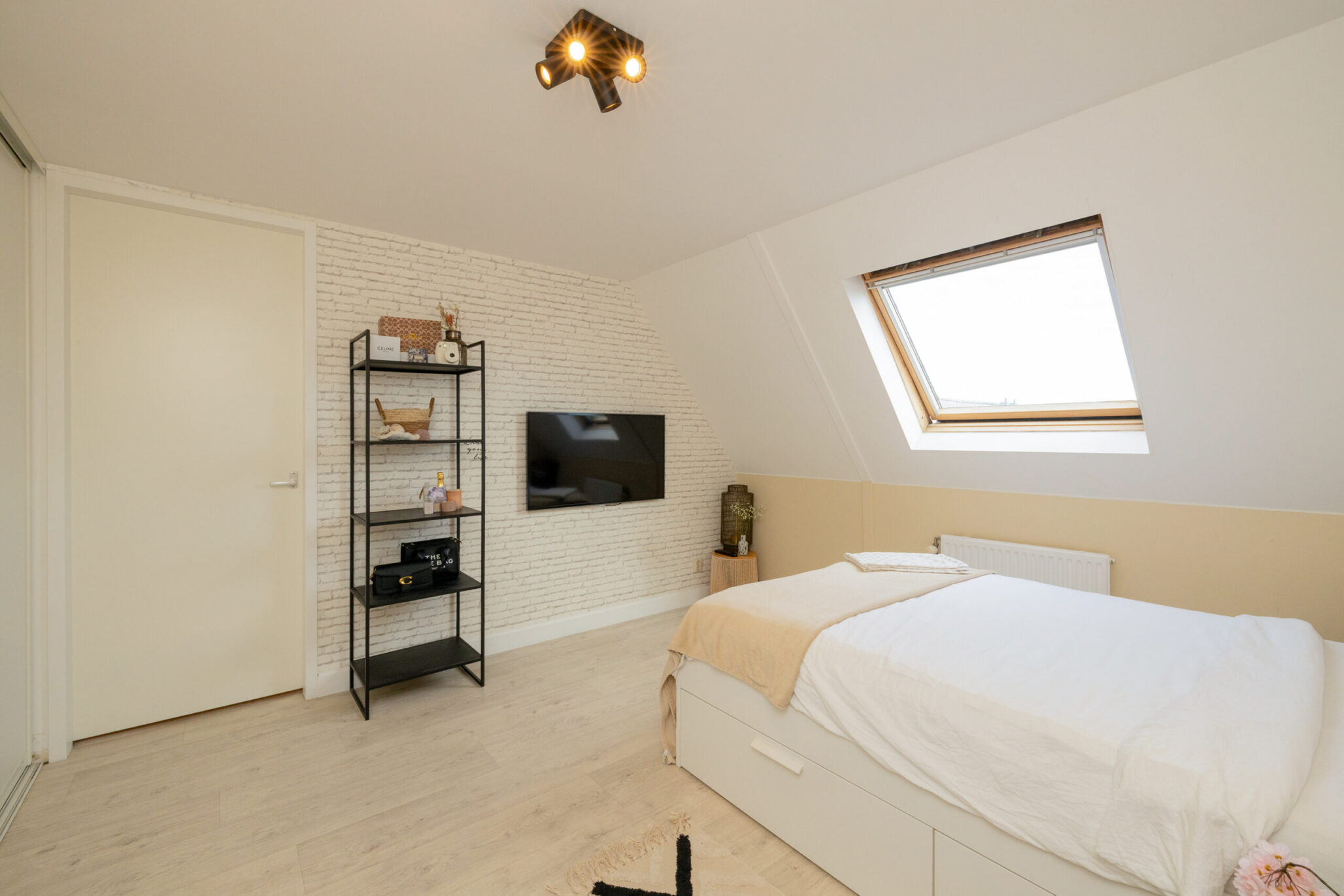 De tweede verdieping biedt een overloop met opstelplaats voor de cv-ketel uit 2020, zonneboiler en wasruimte, plus een vierde slaapkamer van circa 16 m² met vaste kast. Via een vlizotrap is de vliering bereikbaar met verrassend veel opbergruimte, ideaal voor spullen die je niet dagelijks nodig hebt.