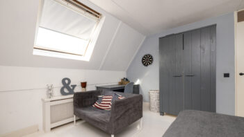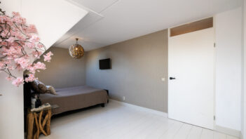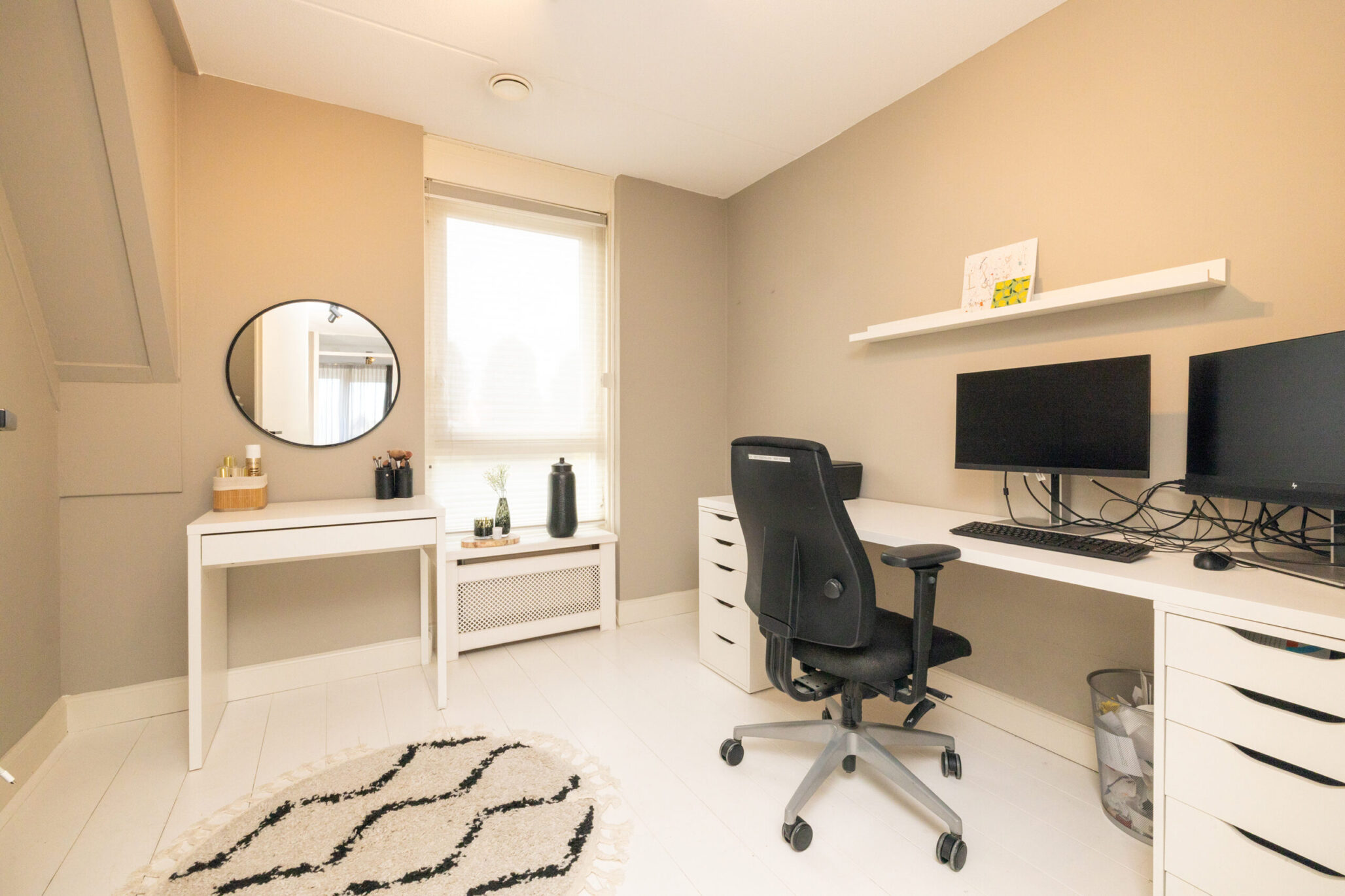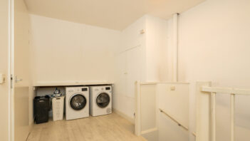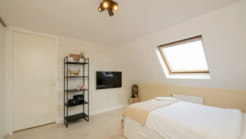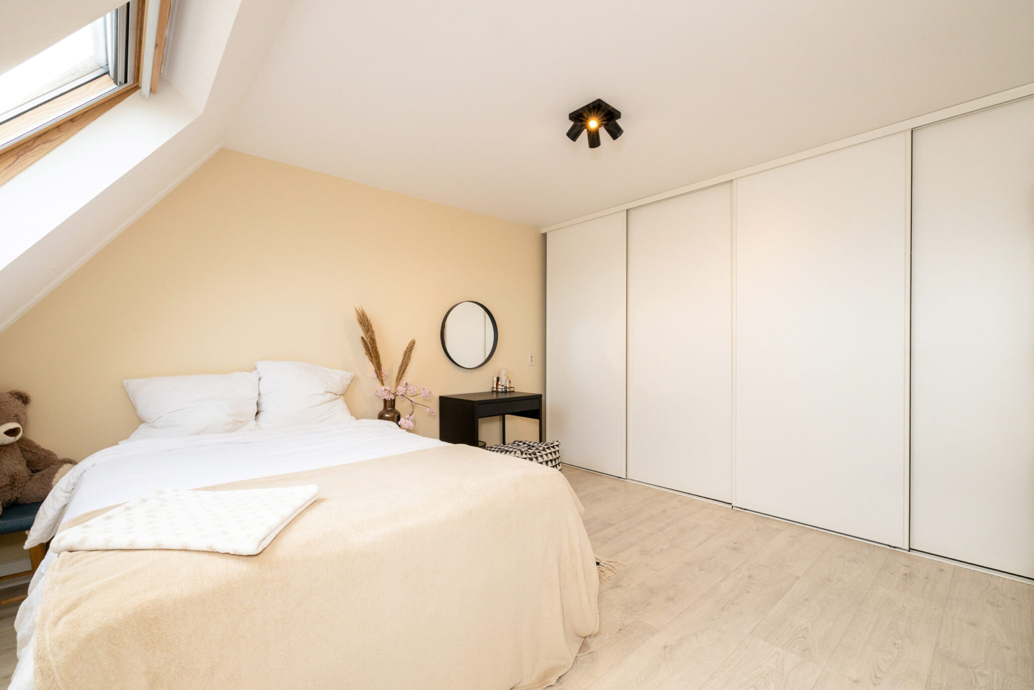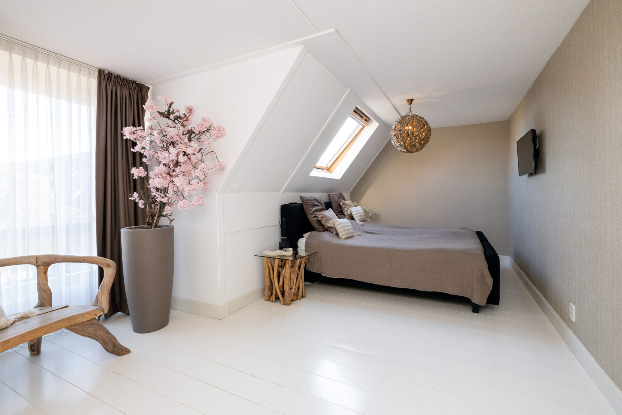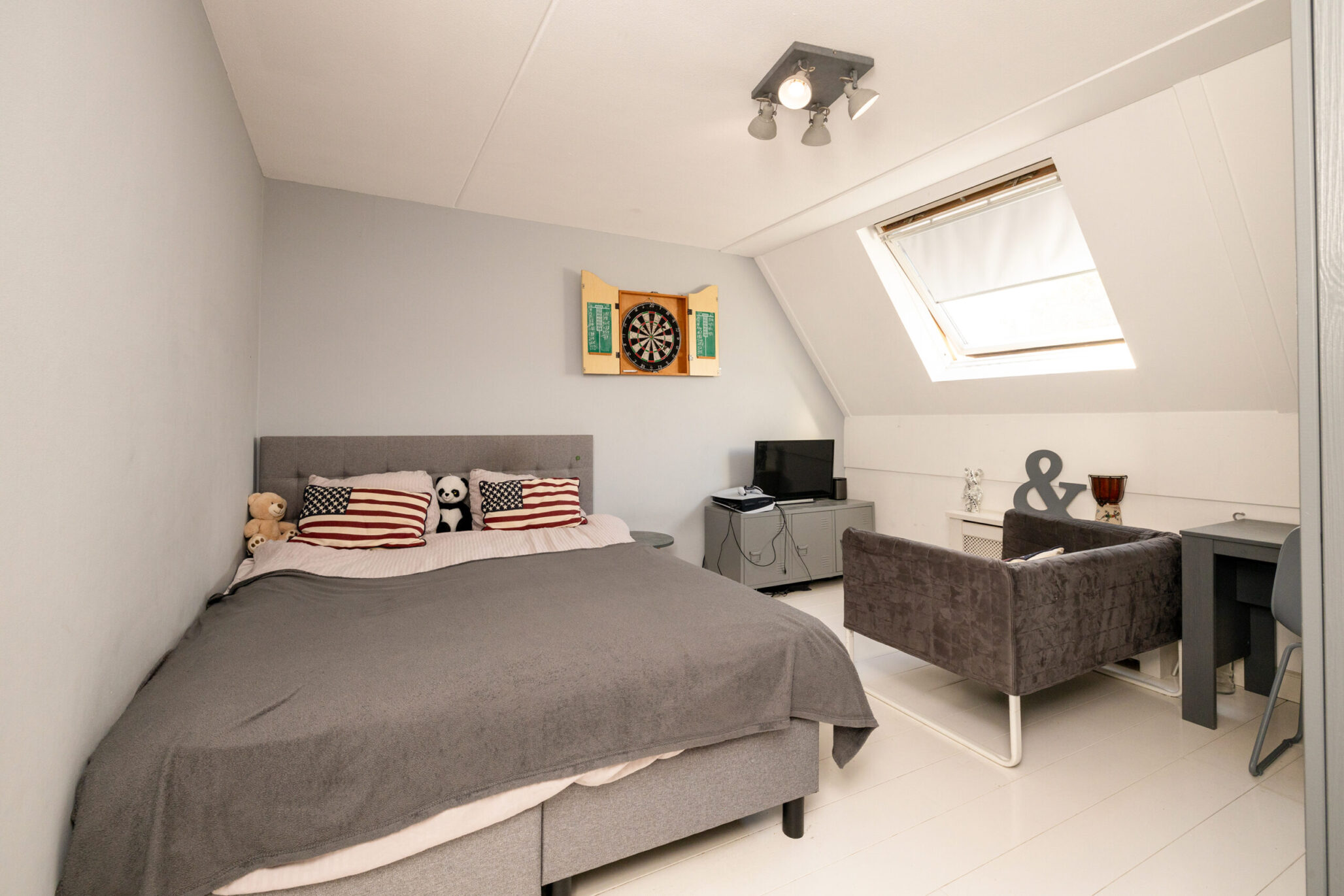 De tweede verdieping biedt een overloop met opstelplaats voor de cv-ketel uit 2020, zonneboiler en wasruimte, plus een vierde slaapkamer van circa 16 m² met vaste kast. Via een vlizotrap is de vliering bereikbaar met verrassend veel opbergruimte, ideaal voor spullen die je niet dagelijks nodig hebt.