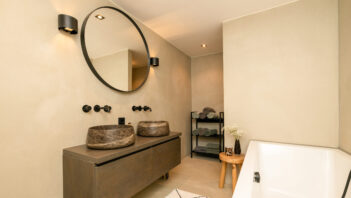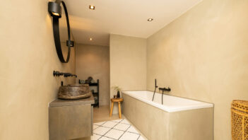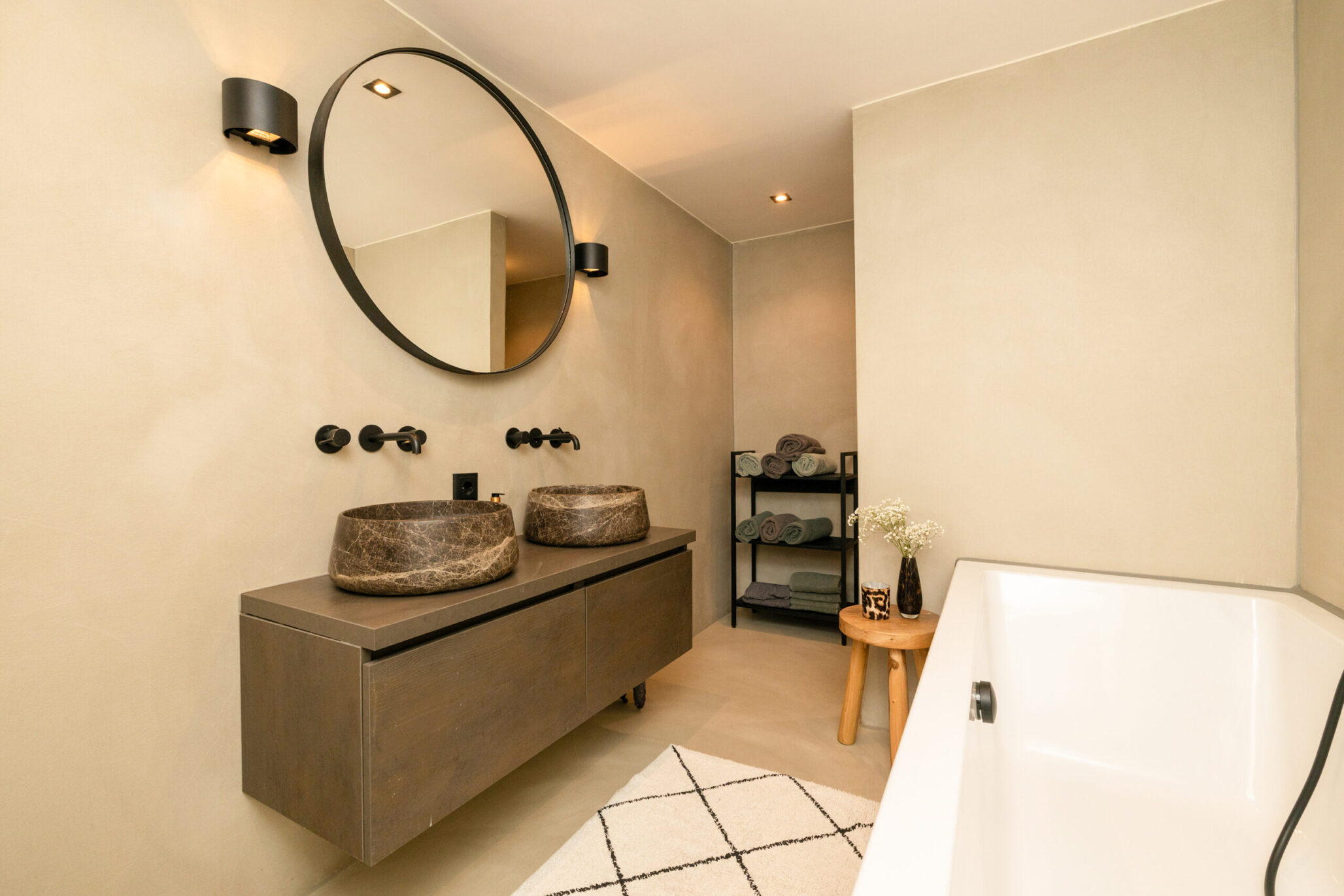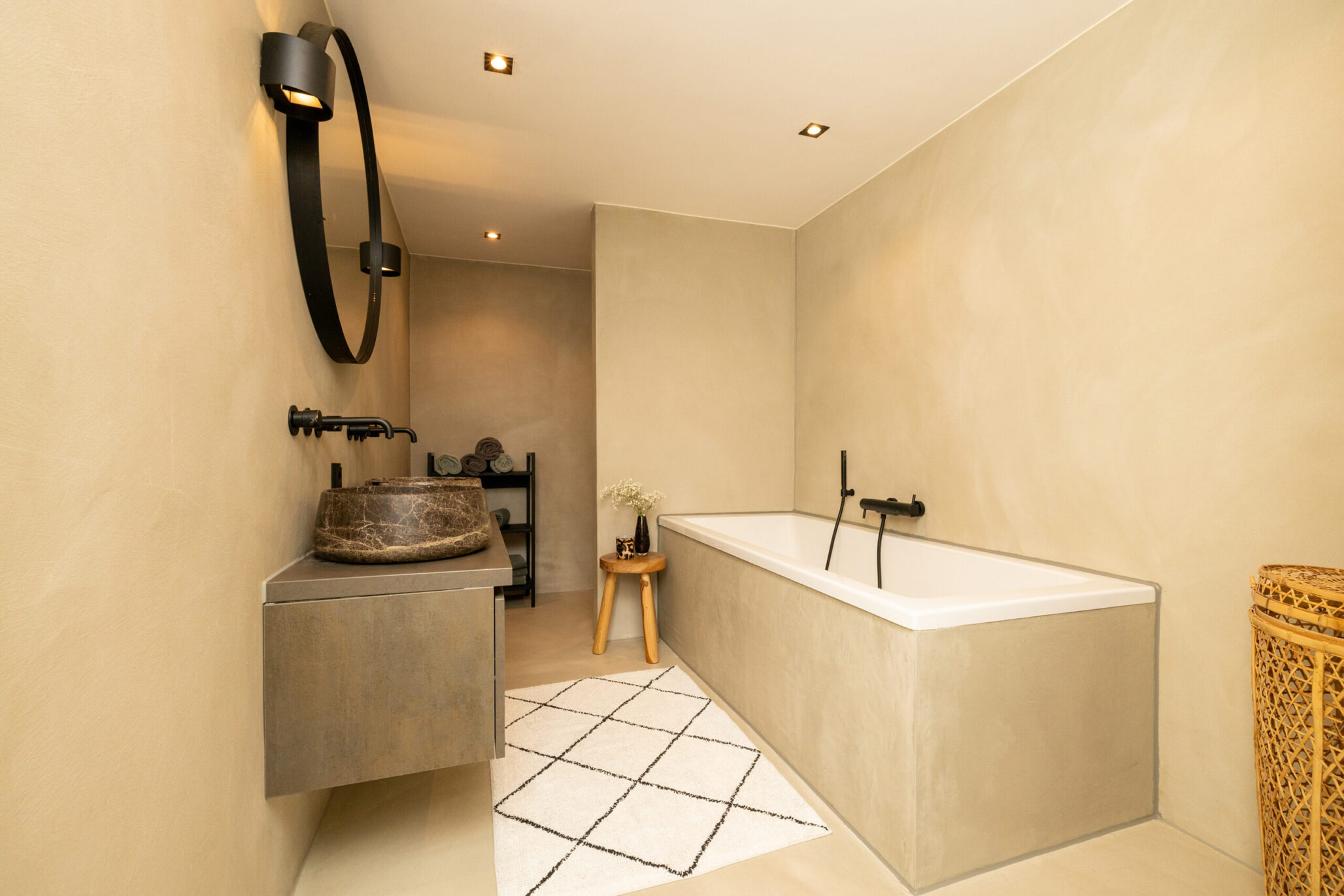 - Badkamer voorzieningen Ligbad, wastafelmeubel, inloopdouche