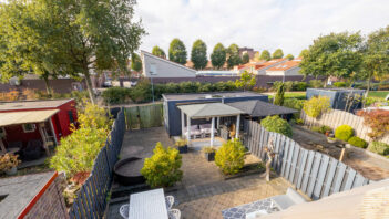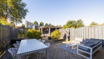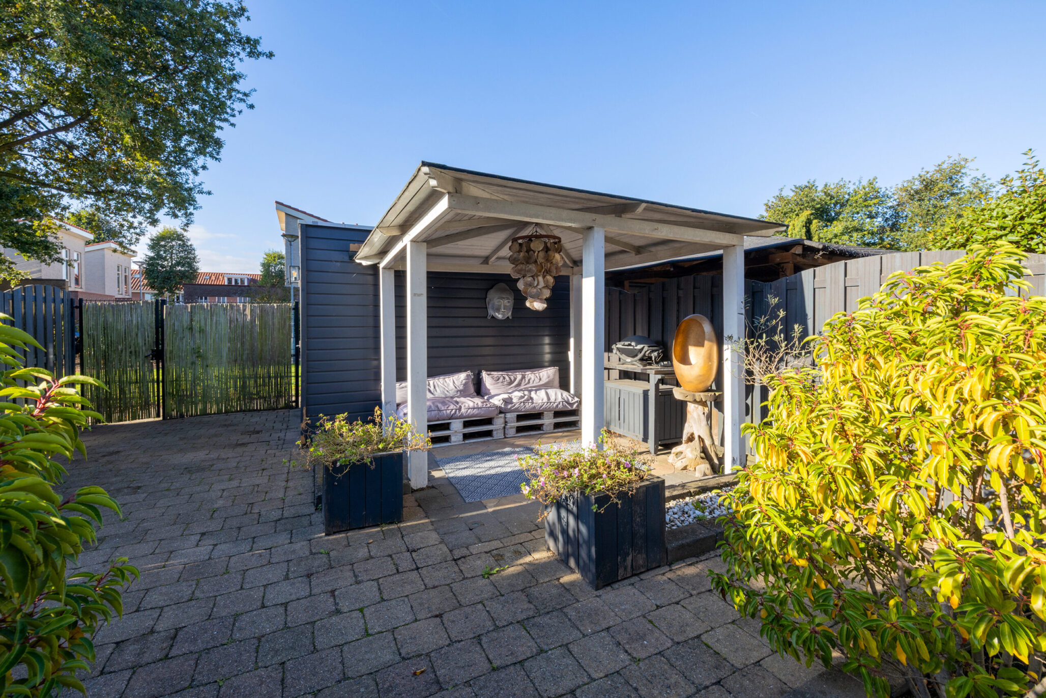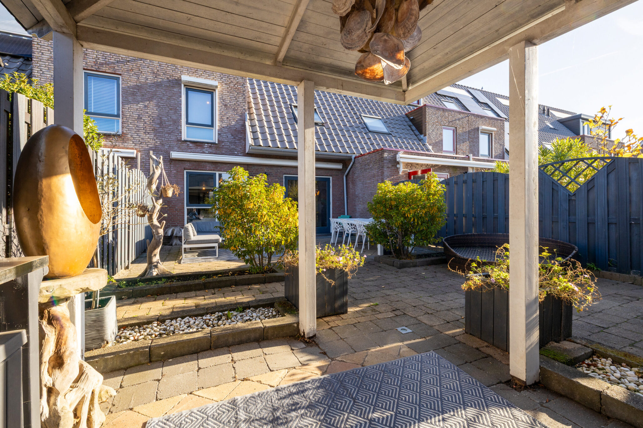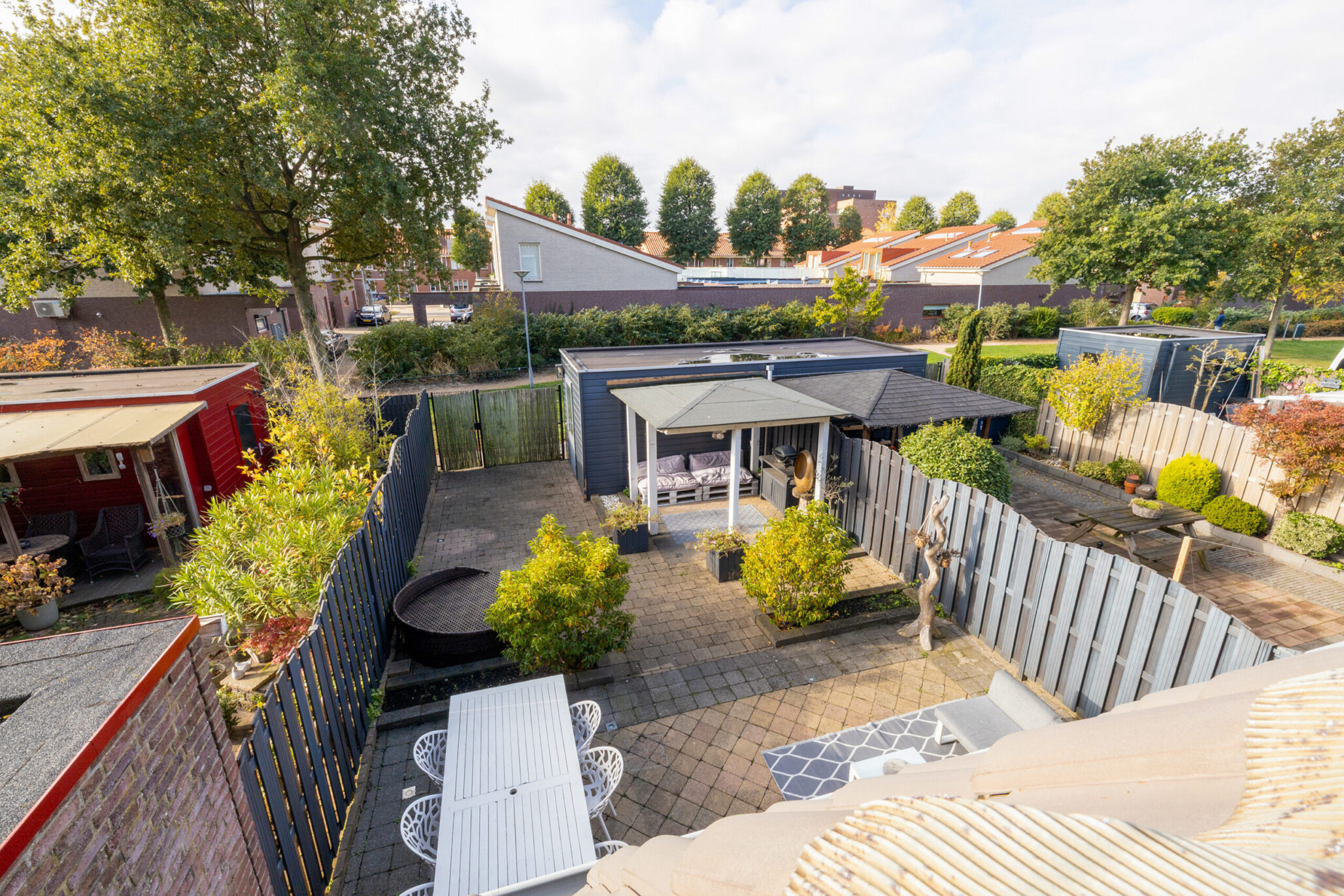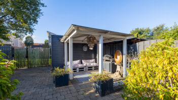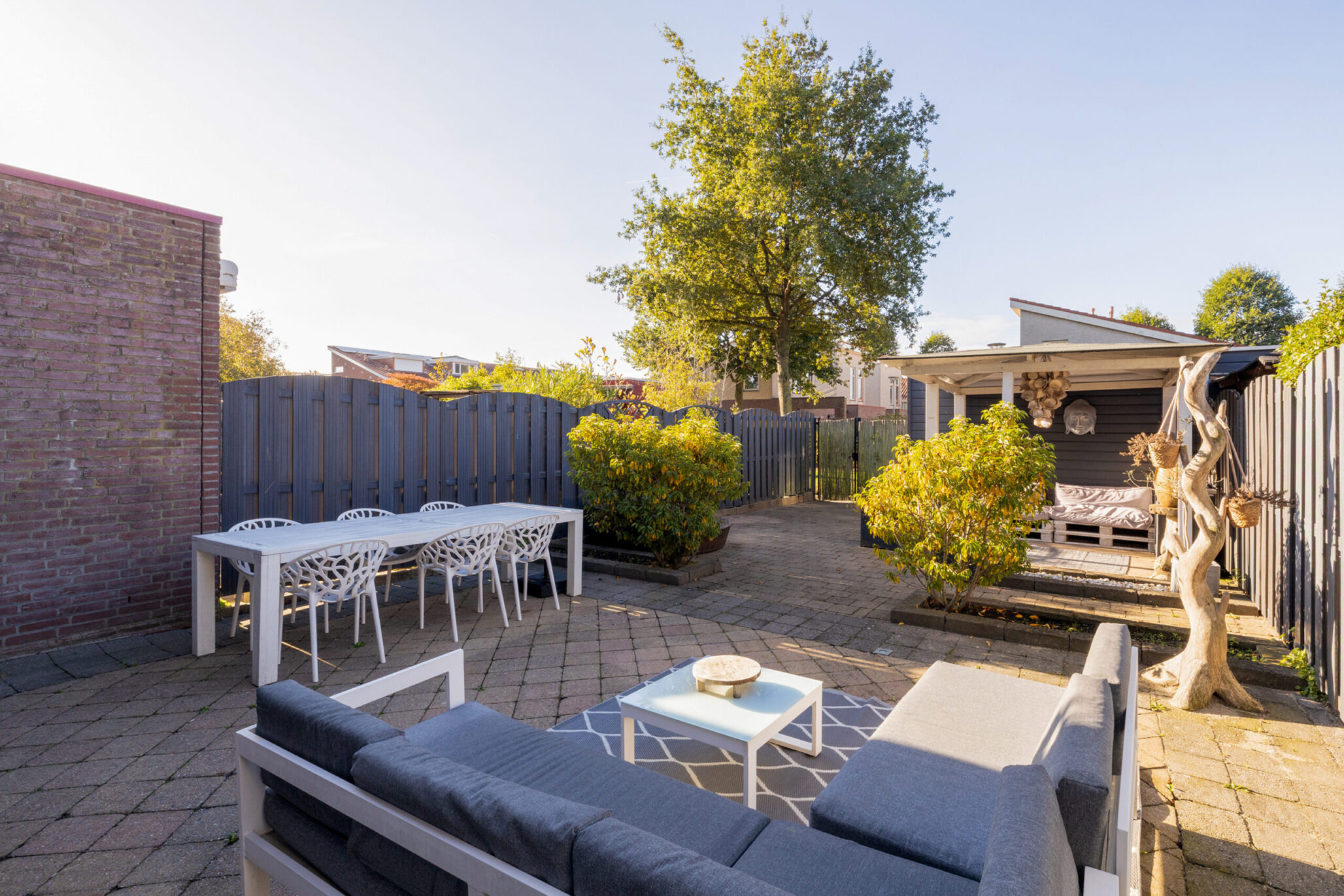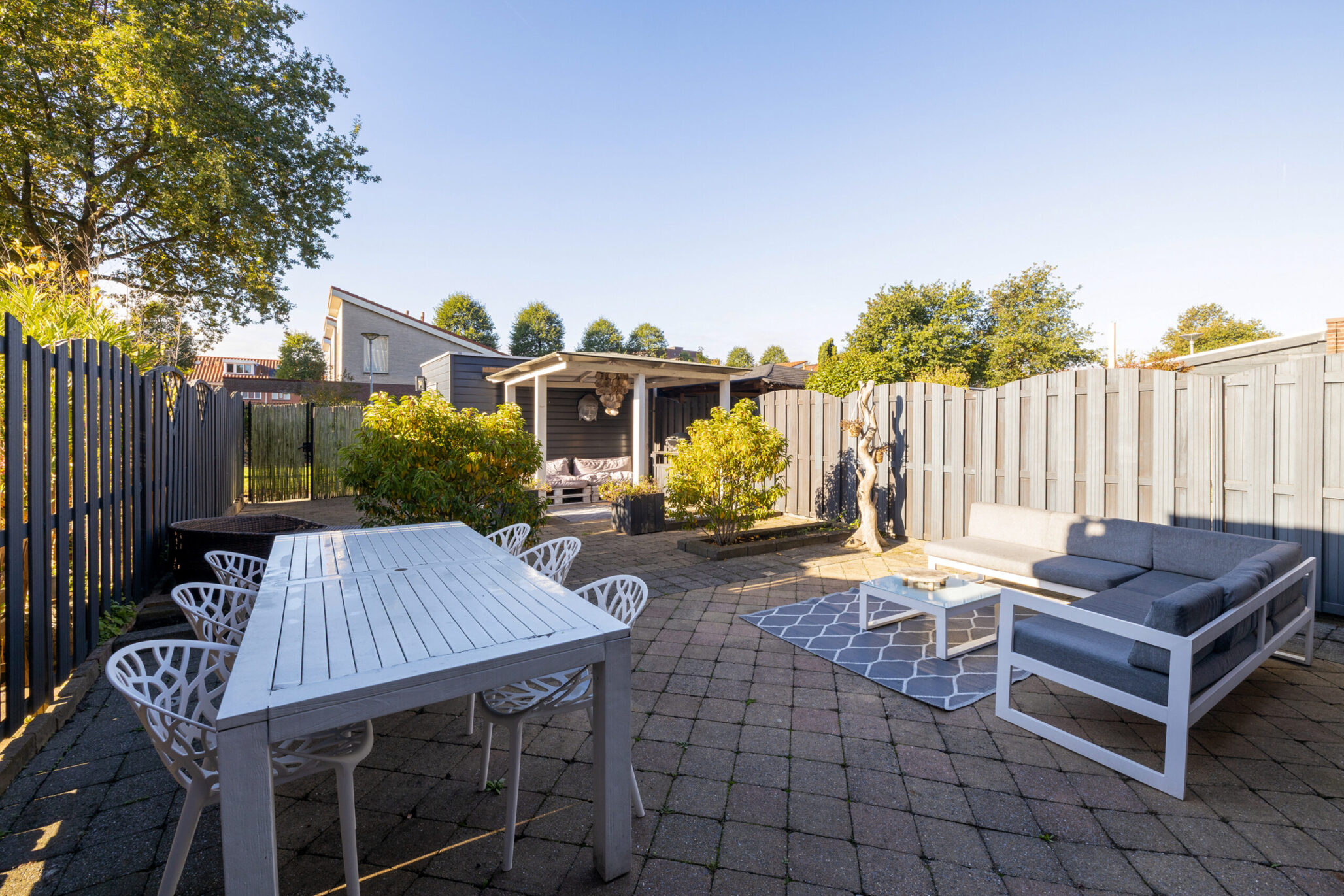 Via openslaande deuren stap je de diepe en brede tuin in, waar je dankzij de zuidwestligging perfect zit. Achterin bevindt zich een berging met gezellige overkapping en een achterom, terwijl de ligging aan een groenstrook zorgt voor veel privacy zonder inkijk.