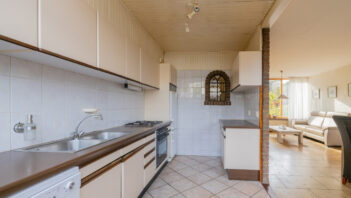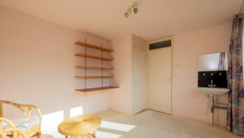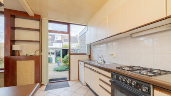 De lichte doorzonwoonkamer van ca. 35 m2 (inclusief keuken) zorgt voor een prettige sfeer en staat in verbinding met de half gesloten keuken. De keuken heeft een recht aanrecht en een deur naar de tuin.