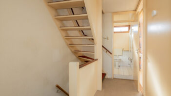 Via de ruime voortuin kom je bij de entree van de woning. In de hal is de trapopgang, de meterkast en het toilet.