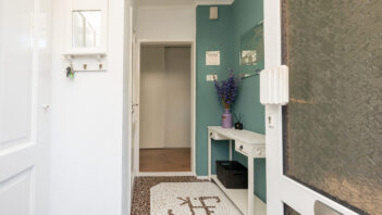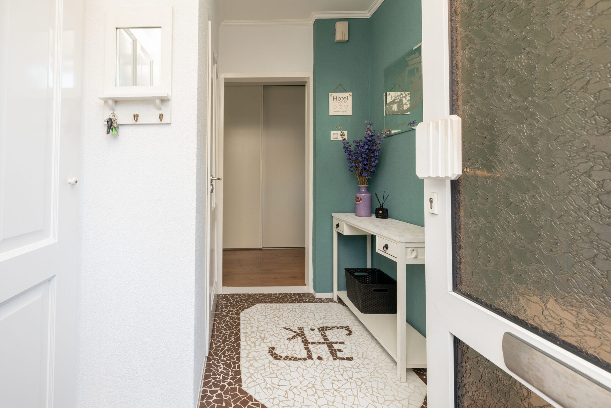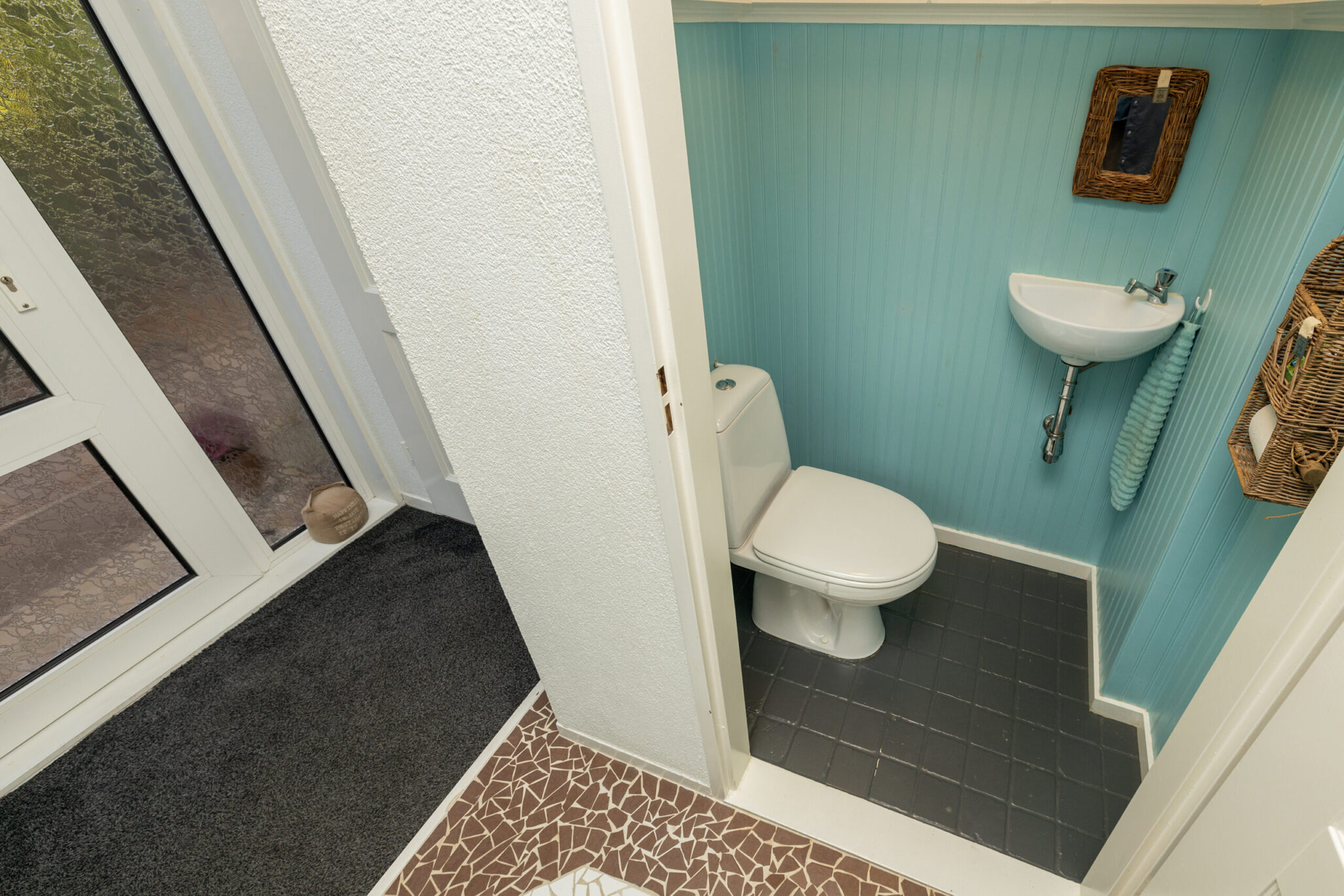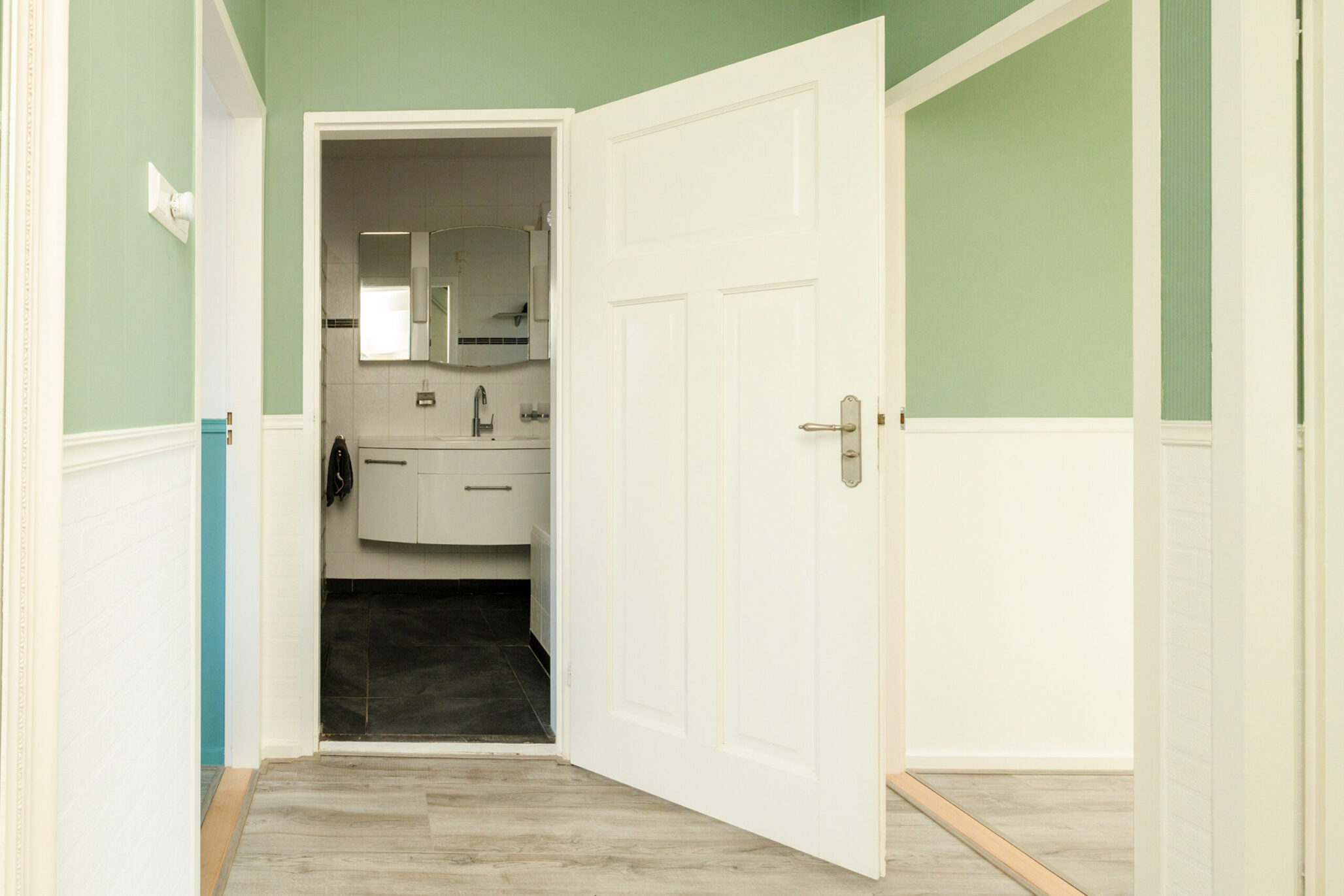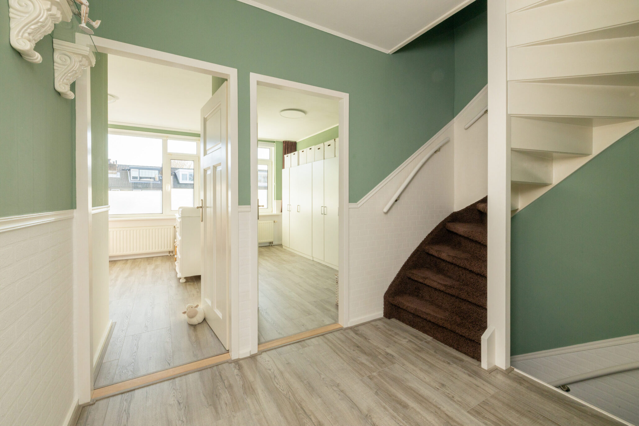 Parkeren kan comfortabel op de eigen oprit, direct voor de deur. Via de entree kom je in de hal met meterkast, garderobe, toilet met fonteintje en toegang tot de woonkamer en keuken.