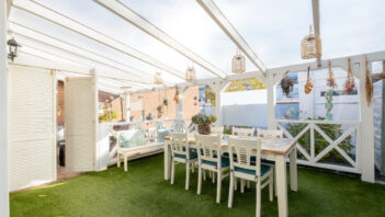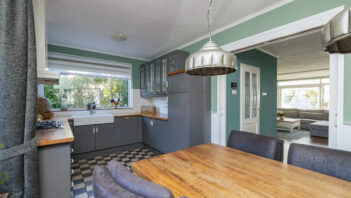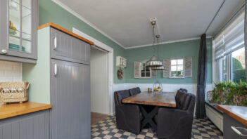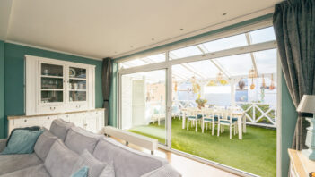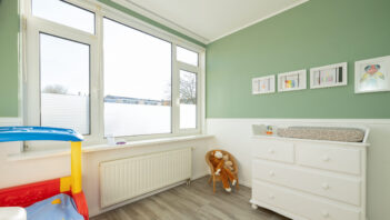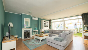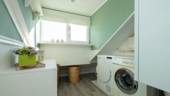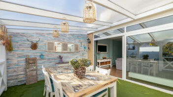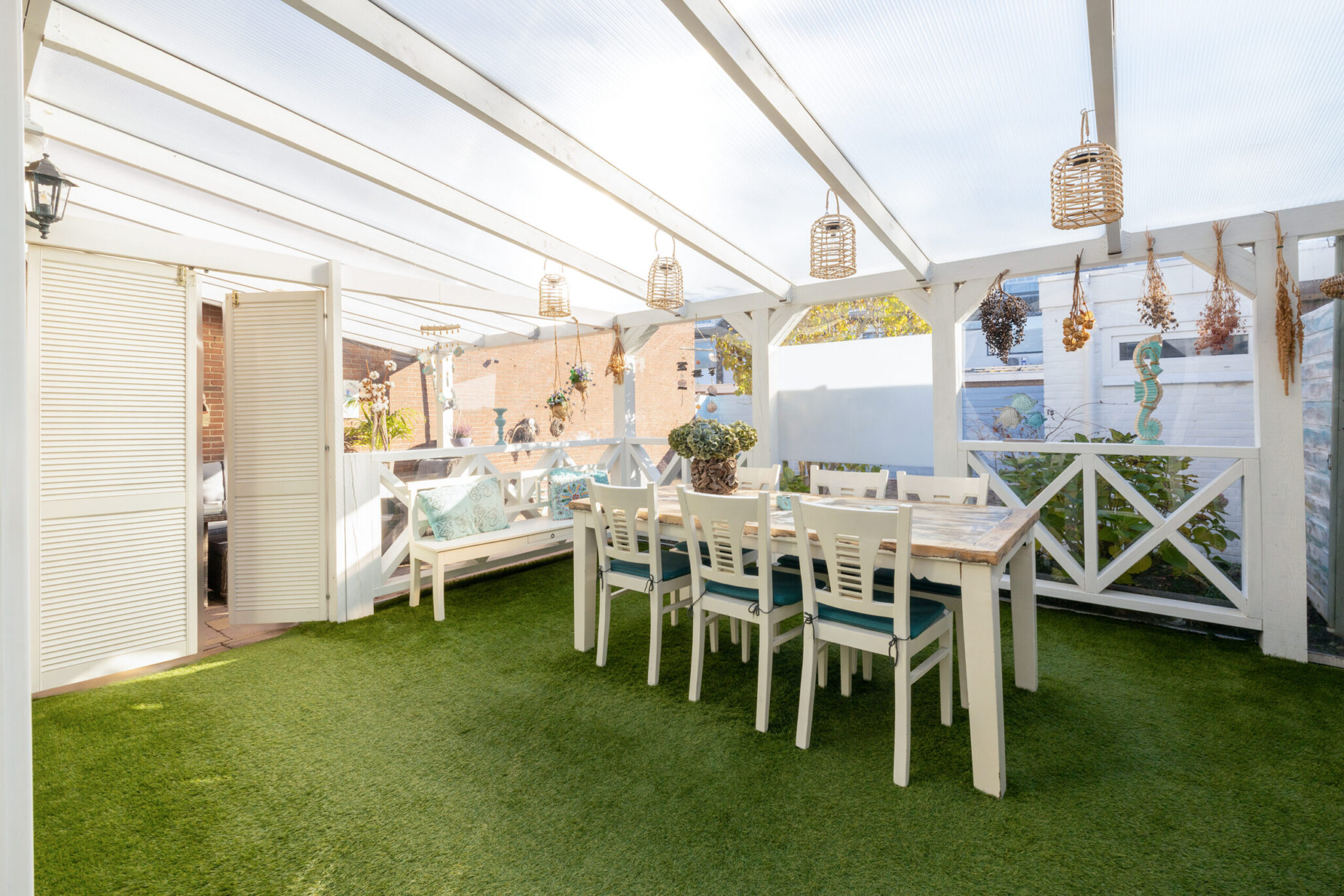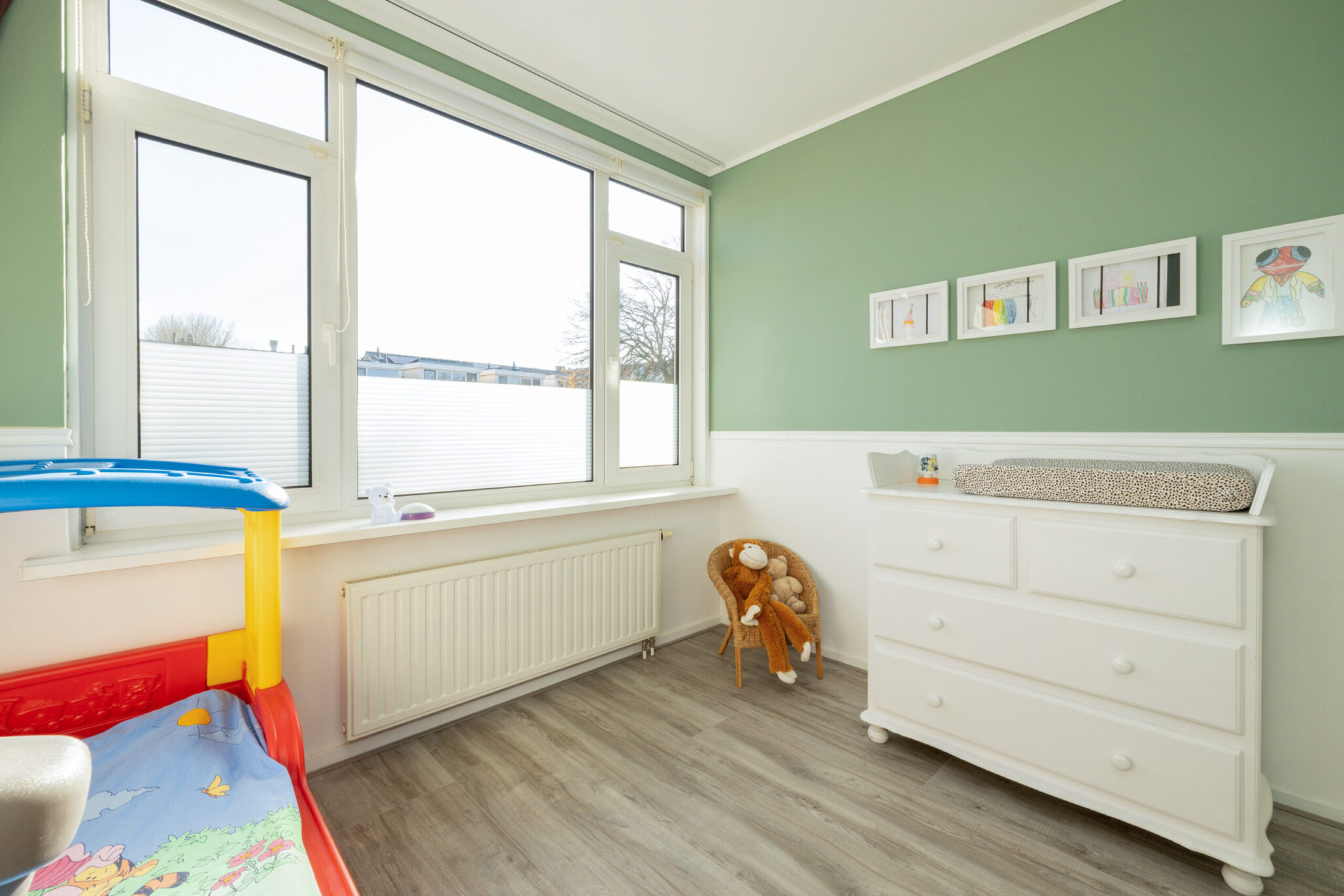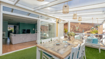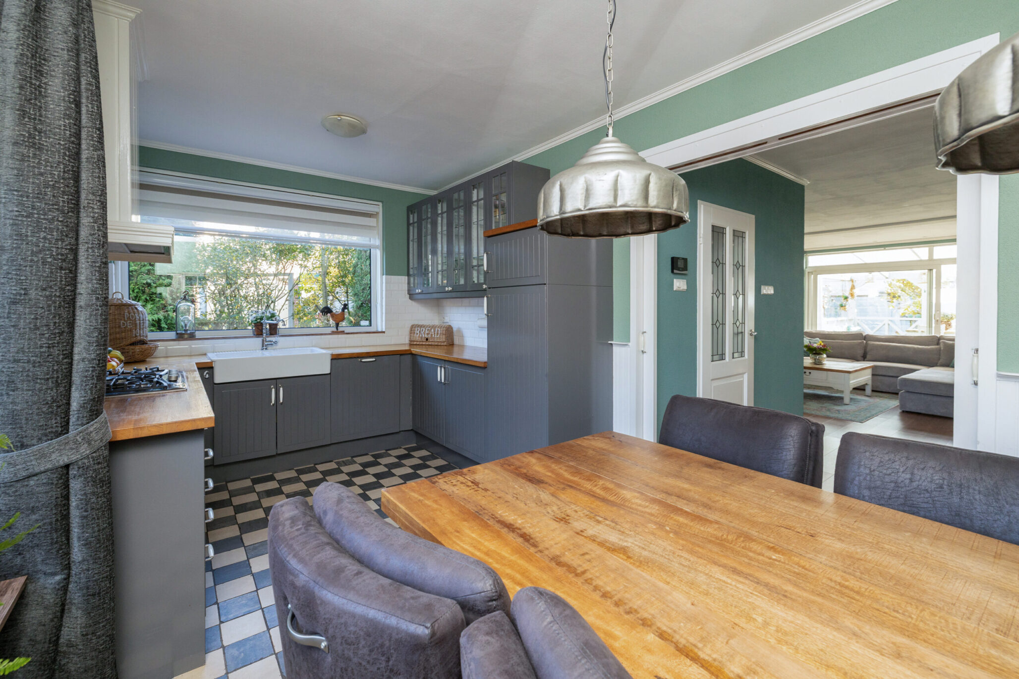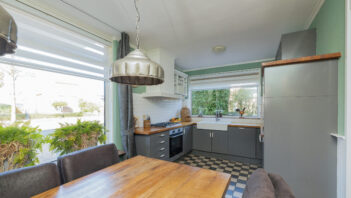 De uitgebouwde woonkamer aan de achterzijde biedt extra leefruimte en is heerlijk licht dankzij de aangebouwde serre. Deze serre vormt een verlengstuk van de woonkamer en is ideaal als tweede zitruimte of als plek om vroeg in het jaar al van de zon te genieten. Dankzij de openslaande deuren loop je zo door naar de overkapping met gezellige zithoek – perfect voor zomeravonden met familie of vrienden.