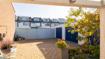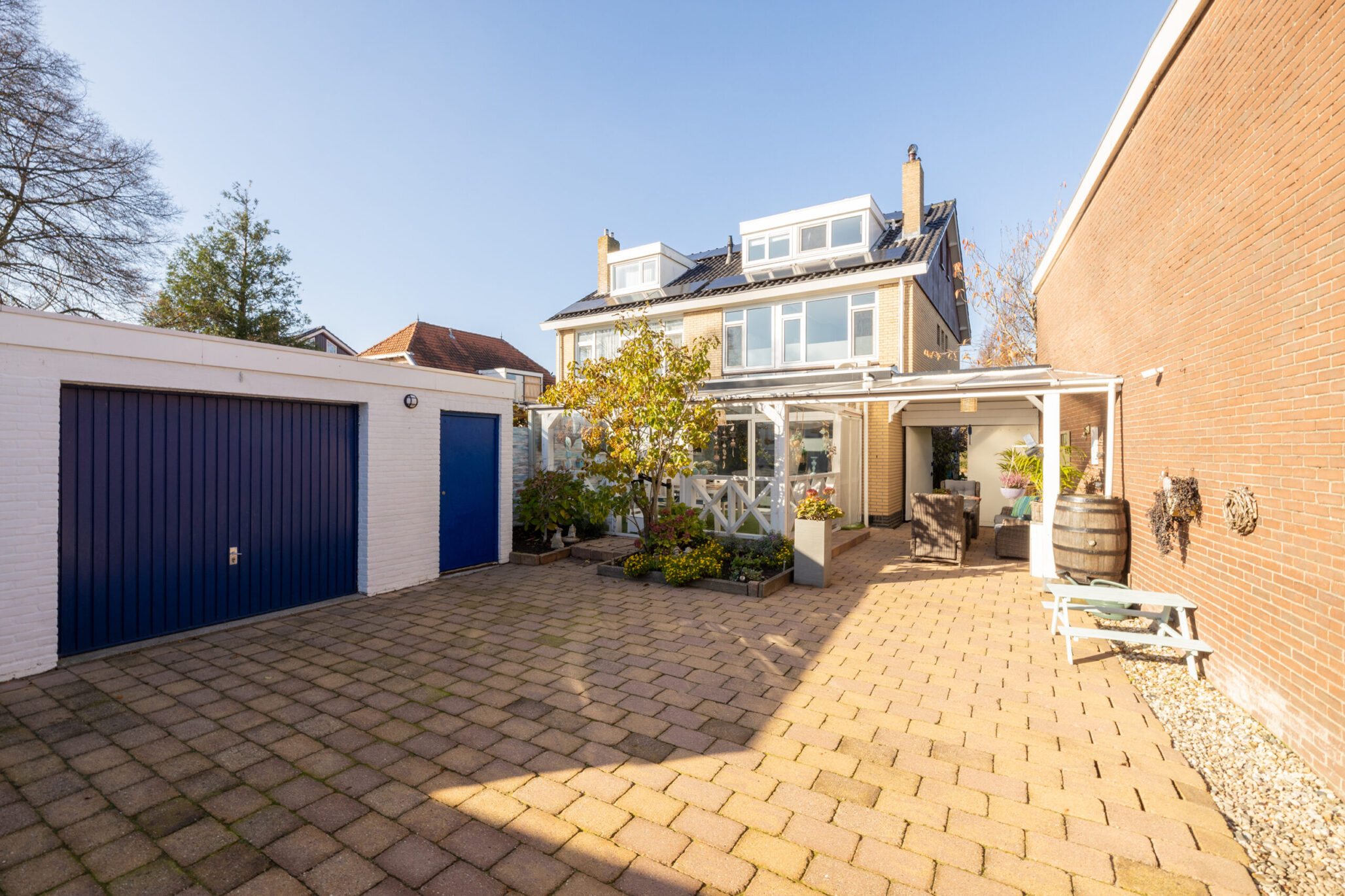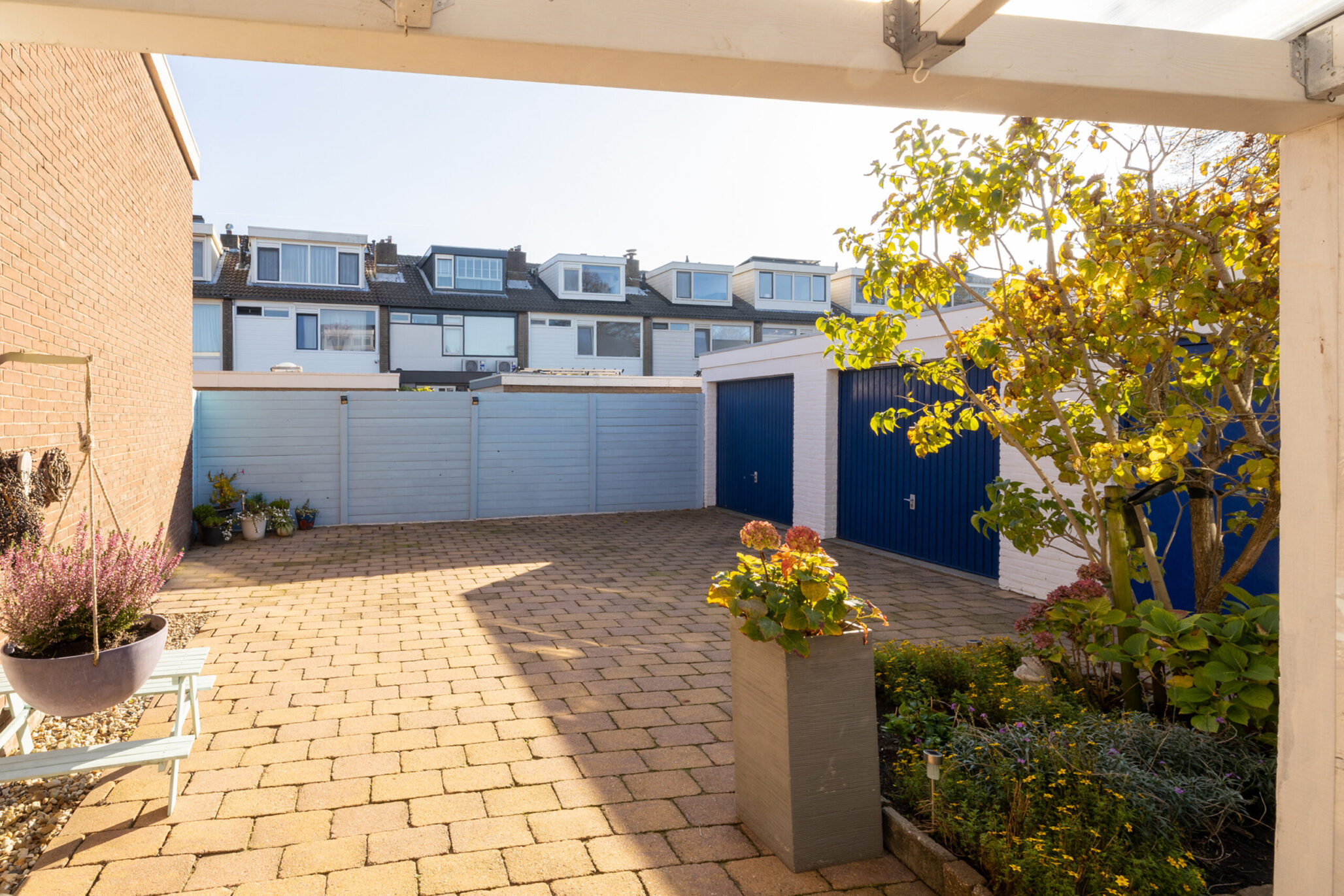 De achtertuin is ruim van formaat, onderhoudsvriendelijk betegeld en gunstig gelegen op het zonnige zuidoosten. Tevens bevindt zich hier de garage (ca. 23 m²) met voldoende ruimte voor hobby, opslag of werkplek.