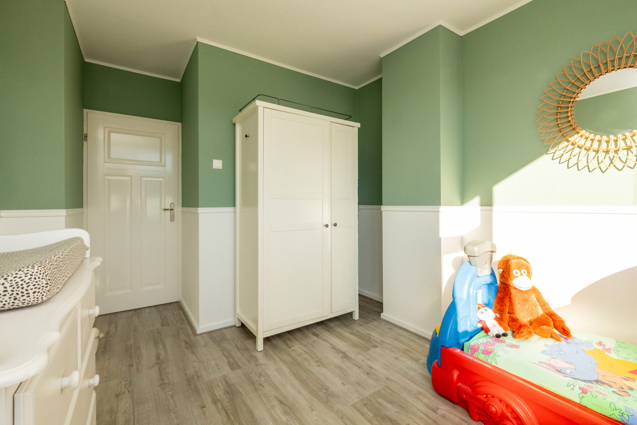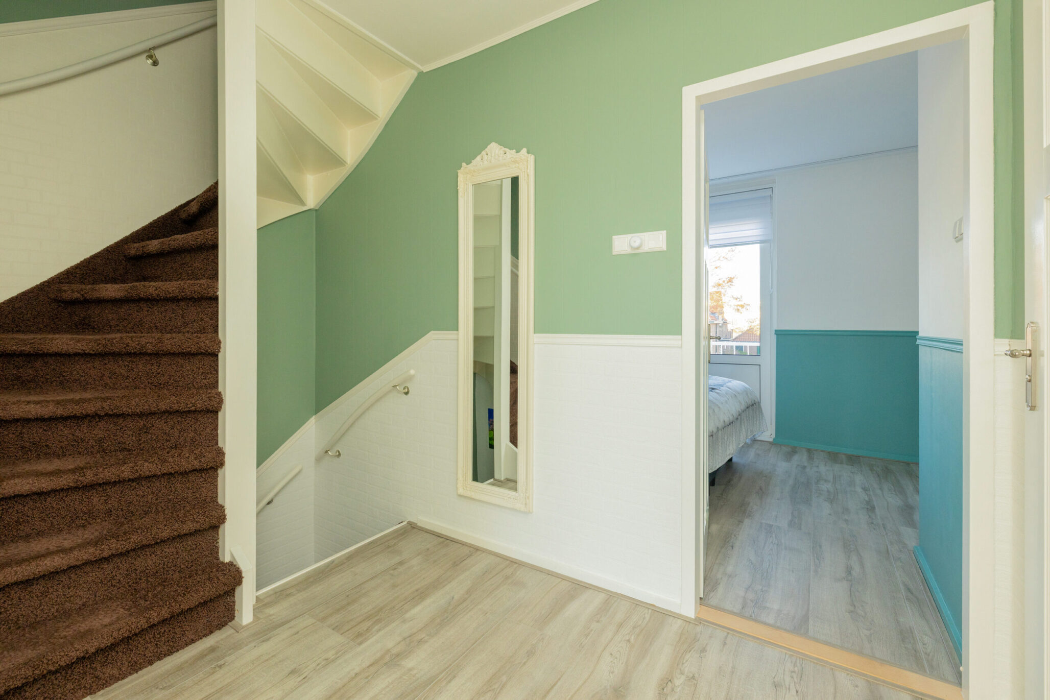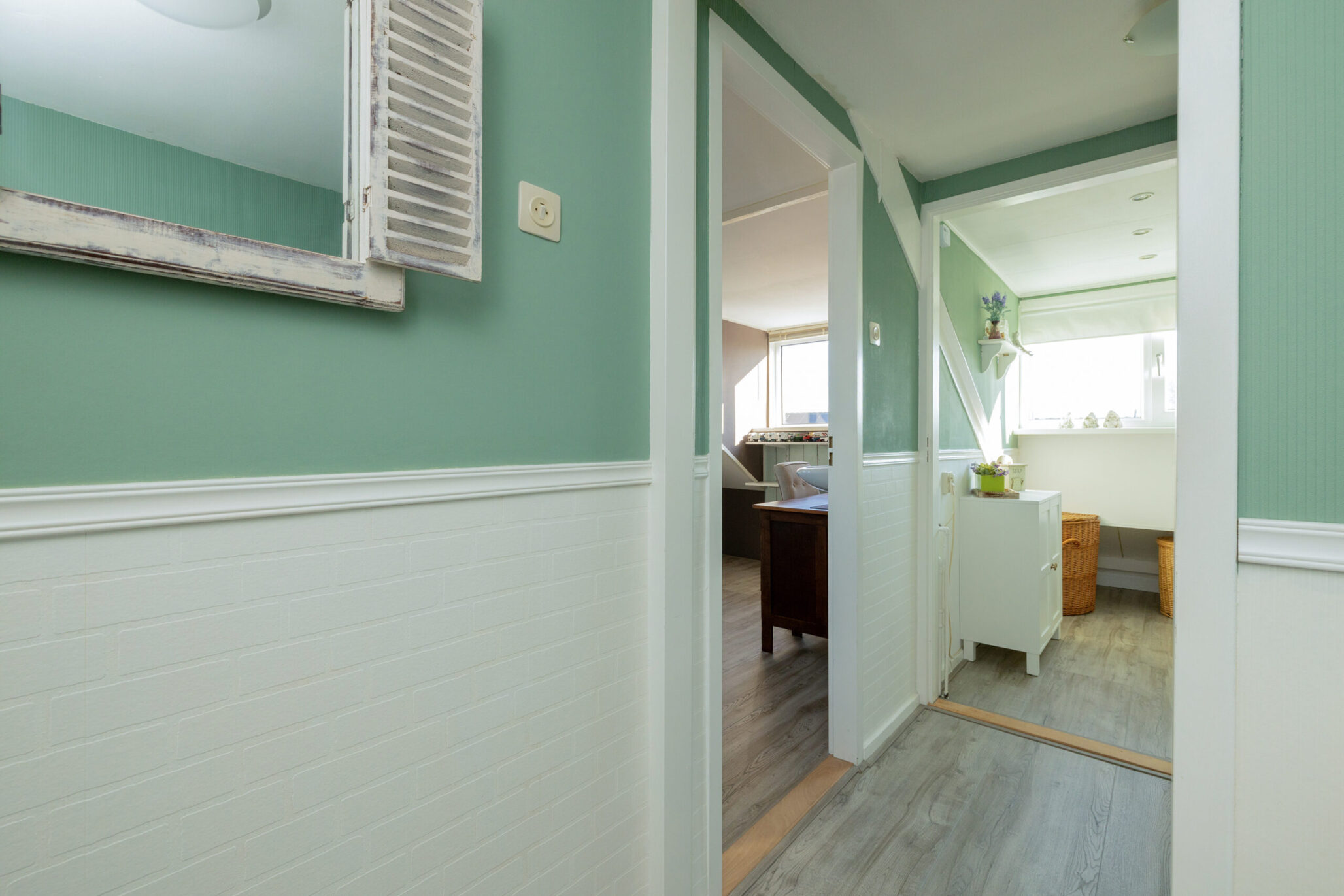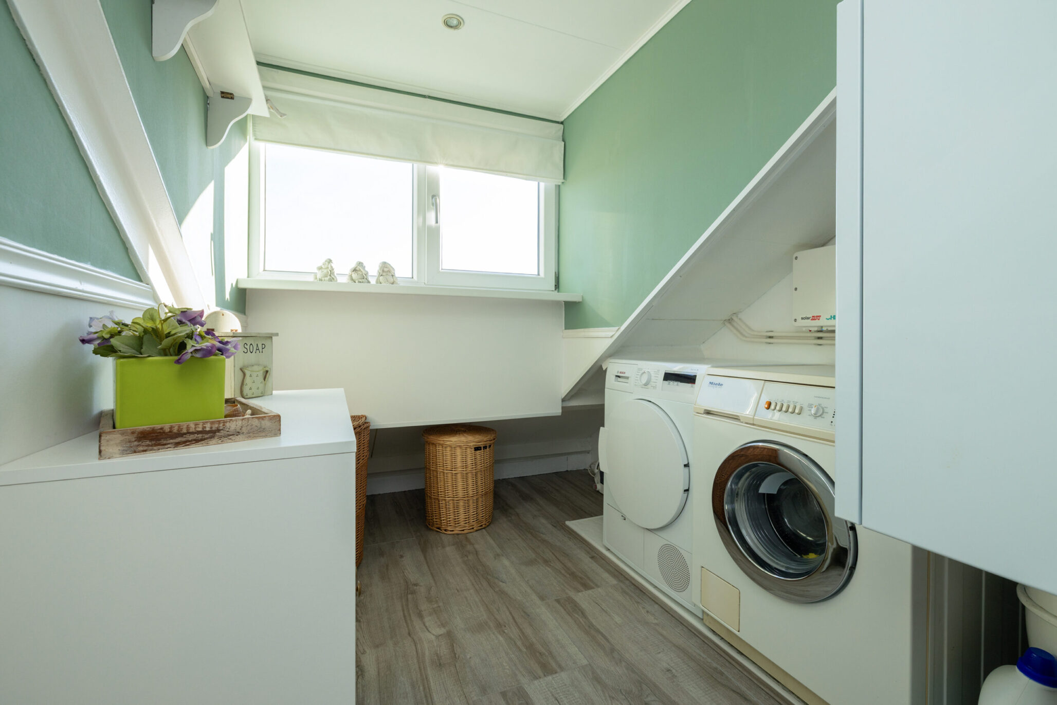Via een vaste trap kom je terecht op de tweede verdieping, welke goed is ingedeeld. Vanaf de overloop met ingebouwde kast is toegang tot een technische ruimte (met dakkapel), waar zich de aansluitingen voor wasmachine en droger bevinden, samen met de cv-ketel (2023) en omvormer van de zonnepanelen.