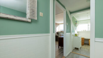 Via de vaste trap bereik je de ruime overloop met toegang tot drie slaapkamers en de badkamer.
