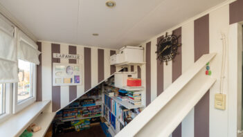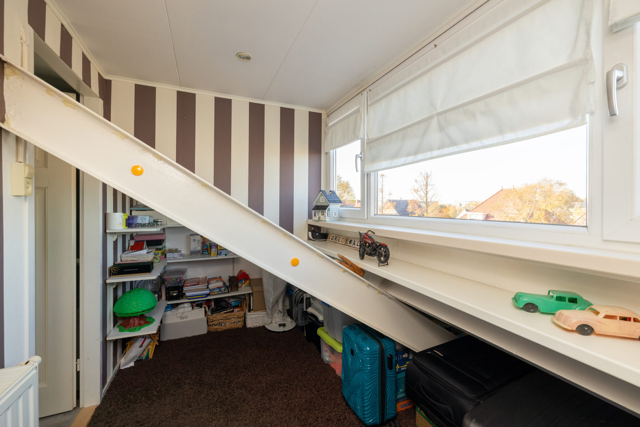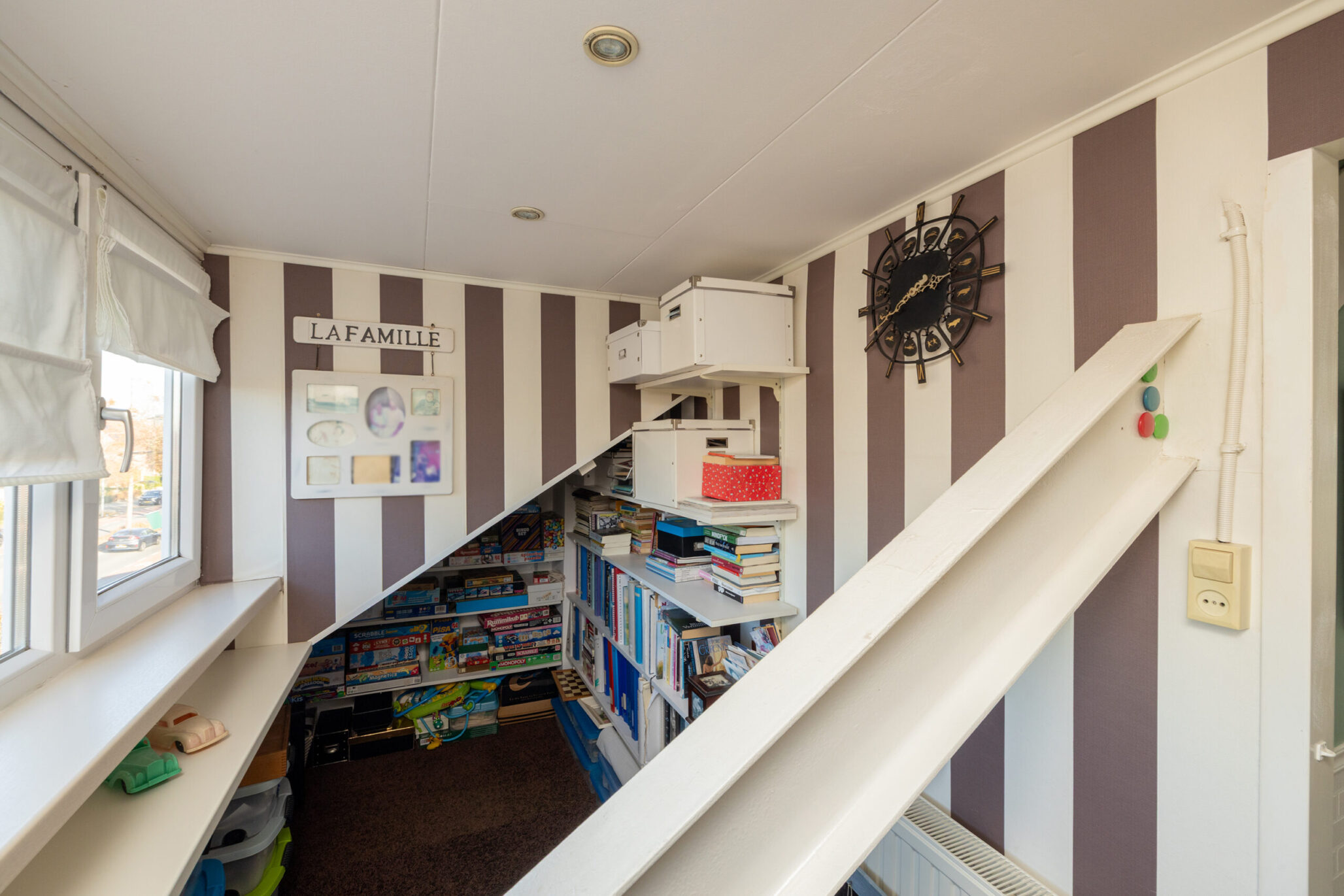 Aan de andere zijde van de overloop ligt een aparte bergkamer (ook met dakkapel), momenteel in gebruik als opslag.