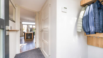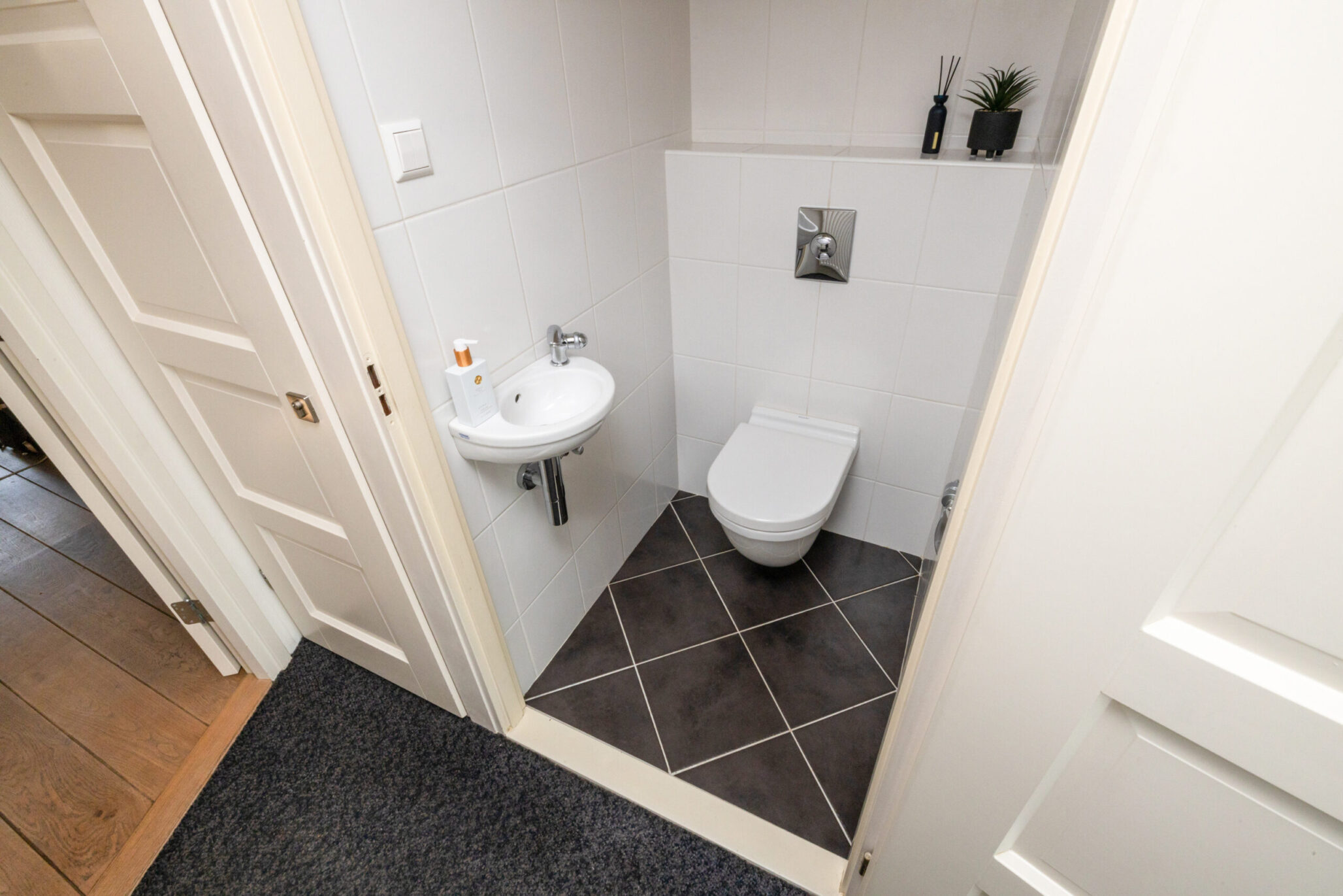 Dankzij de uitbouw aan de voorzijde, de twee dakkapellen en de moderne afwerking biedt deze woning een perfecte mix van comfort en ruimte. De verzorgde voortuin geeft toegang tot de entree. Hier vind je de hal met modern hangend toilet en meterkast.