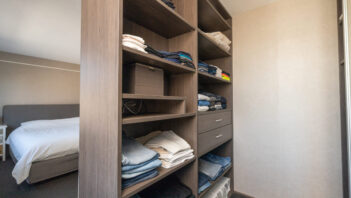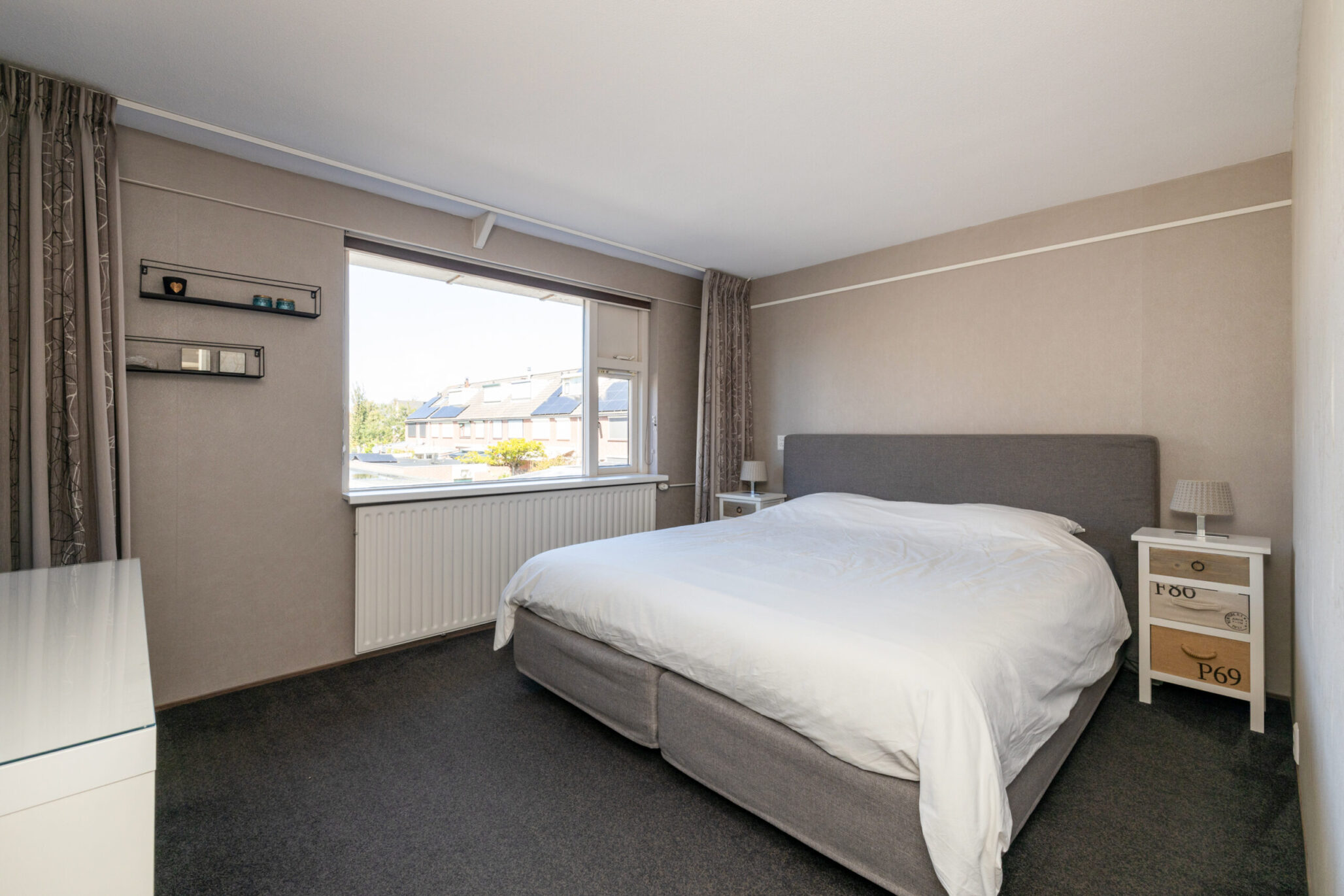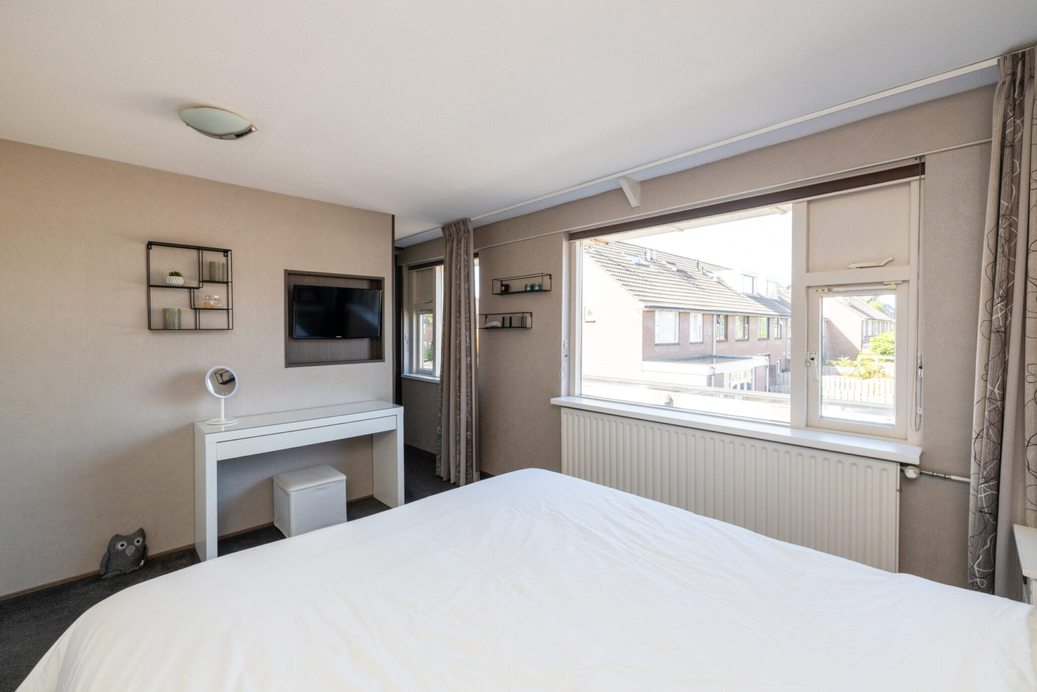 Op de eerste verdieping liggen drie goede slaapkamers. De slaapkamer aan de achterzijde is extra praktisch ingedeeld met een eigen inloopkast. De moderne badkamer heeft een inloopdouche met sunshower, wastafel met meubel en tweede toilet.