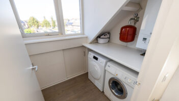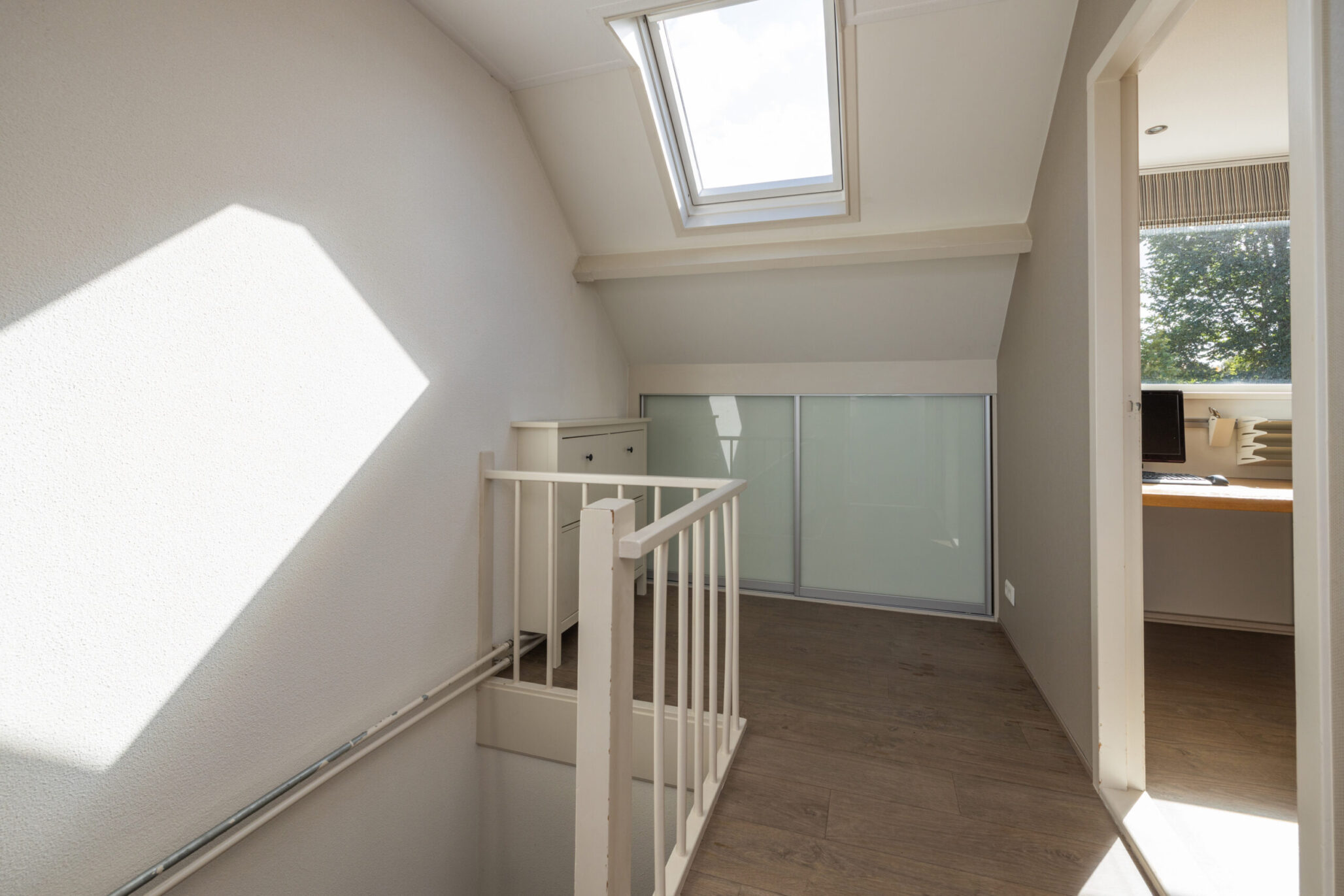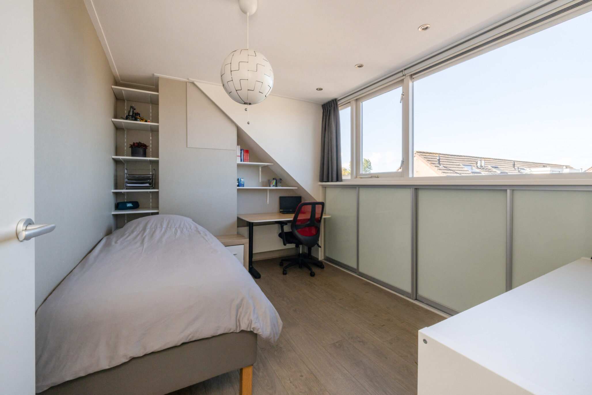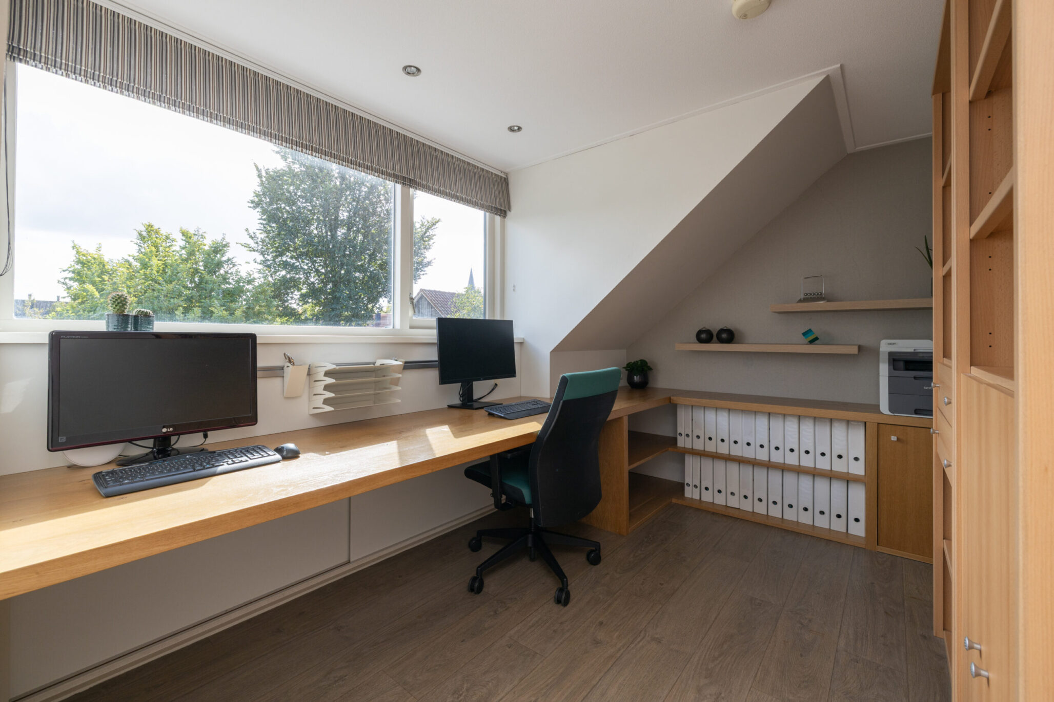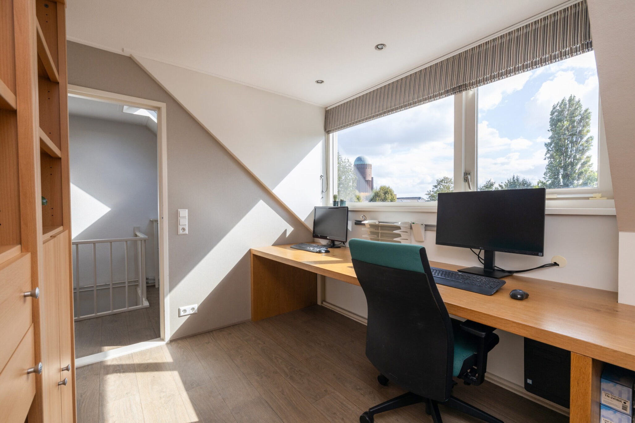 De tweede verdieping is verrassend licht en ruim dankzij twee dakkapellen. Hier zijn nog twee comfortabele slaapkamers gerealiseerd. De slaapkamer aan de voorzijde is momenteel ingericht als kantoorruimte met een ruim bureau en voldoende kastruimte. In de aparte wasruimte bevindt zich de cv-combiketel (2023).