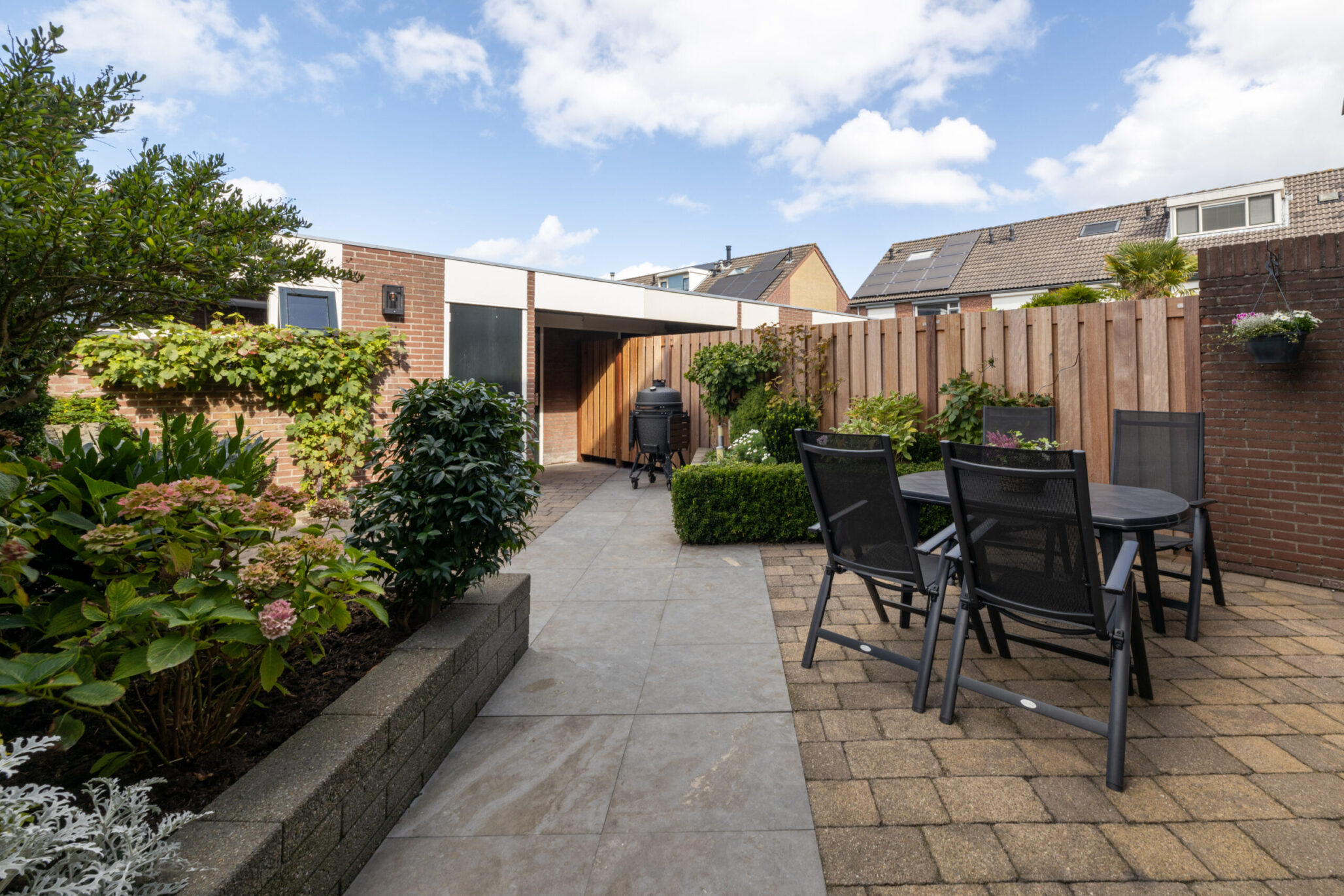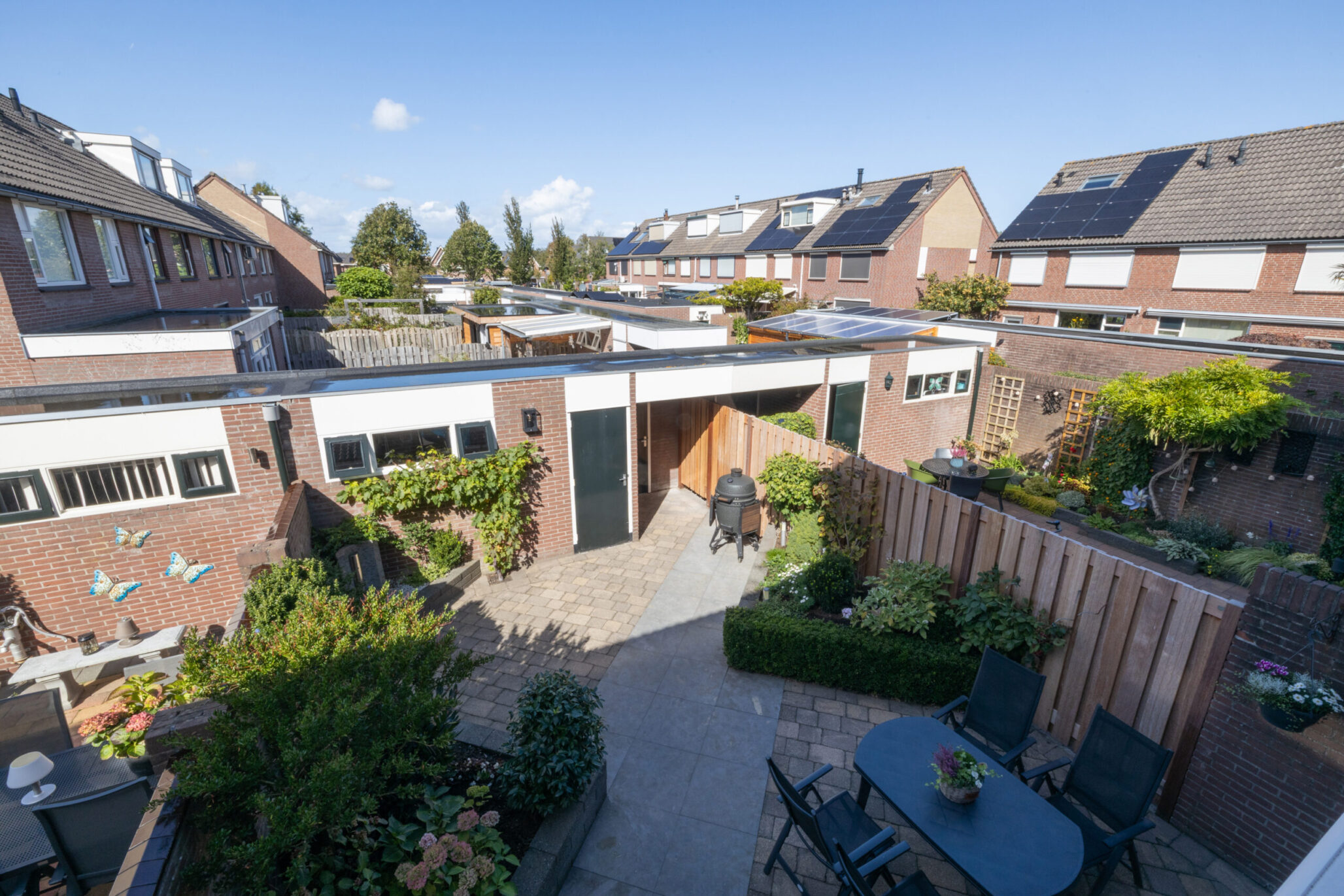 De achtertuin is verzorgd aangelegd en voorzien van een stenen berging. De gunstige ligging op het noordwesten maakt dat je in de loop van de ochtend tot in de avond volop kunt genieten van de zomerzon. Via het achterom is de tuin gemakkelijk bereikbaar. Op de begane grond en de 2e verdieping is de woning voorzien van elektrisch bediende zonwering.
