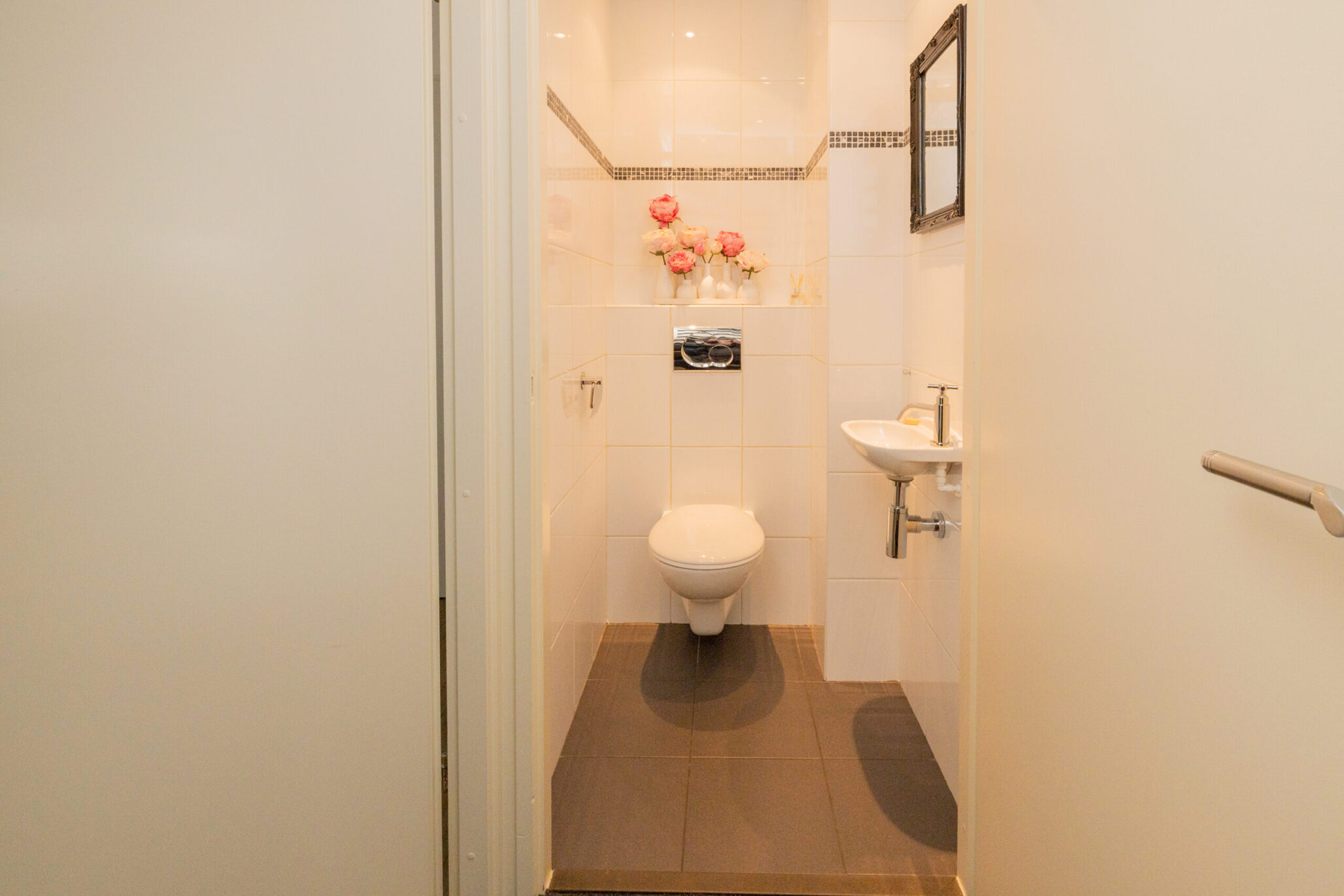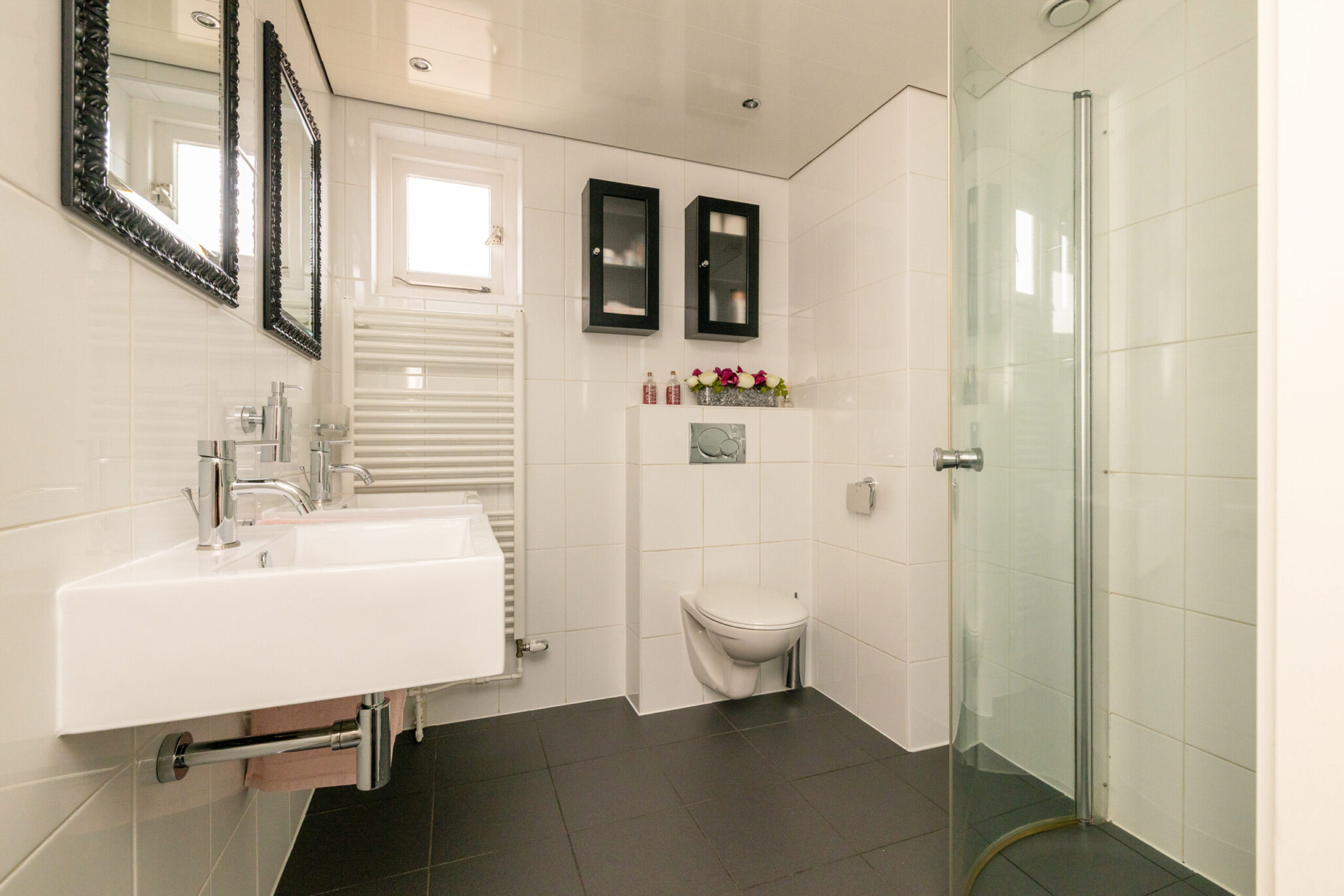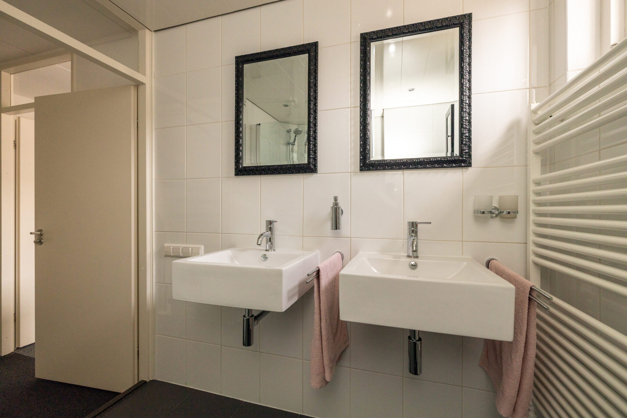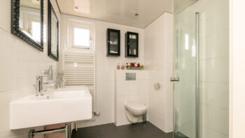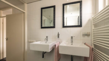 - Badkamer voorzieningen Toilet, dubbele wastafel, inloopdouche