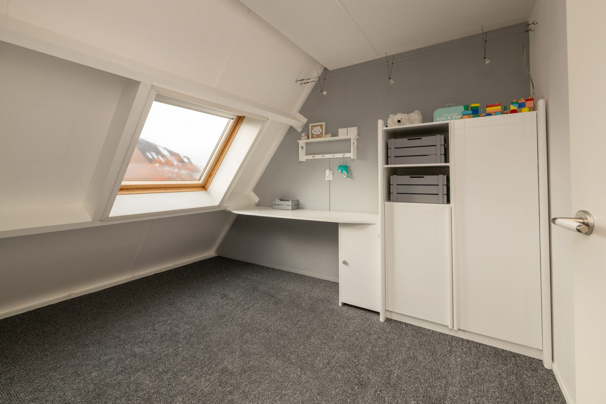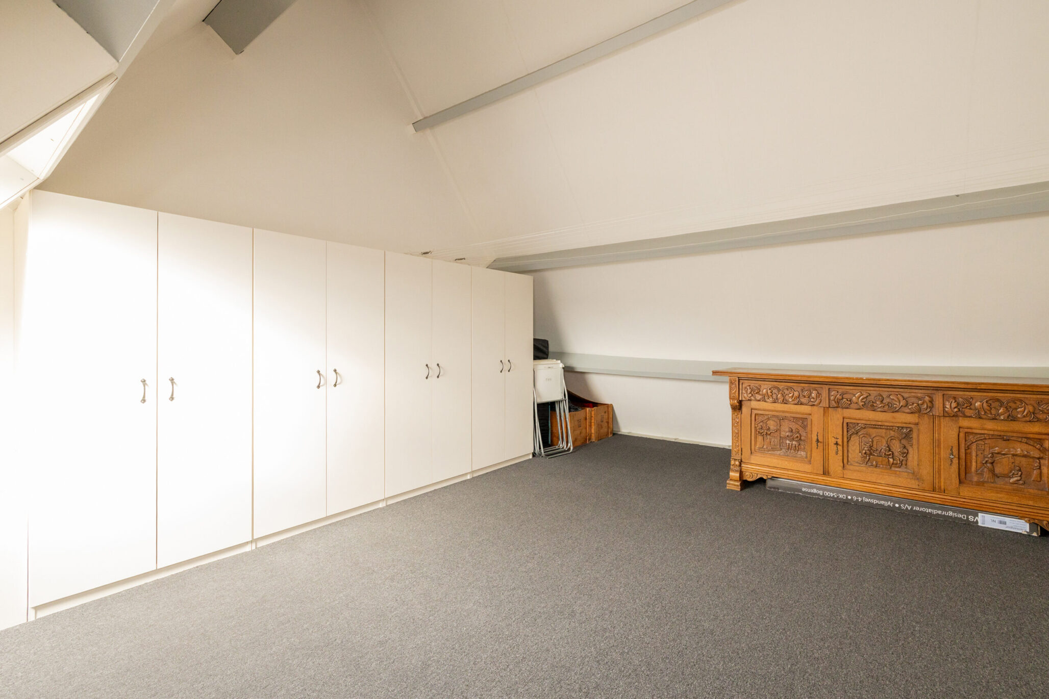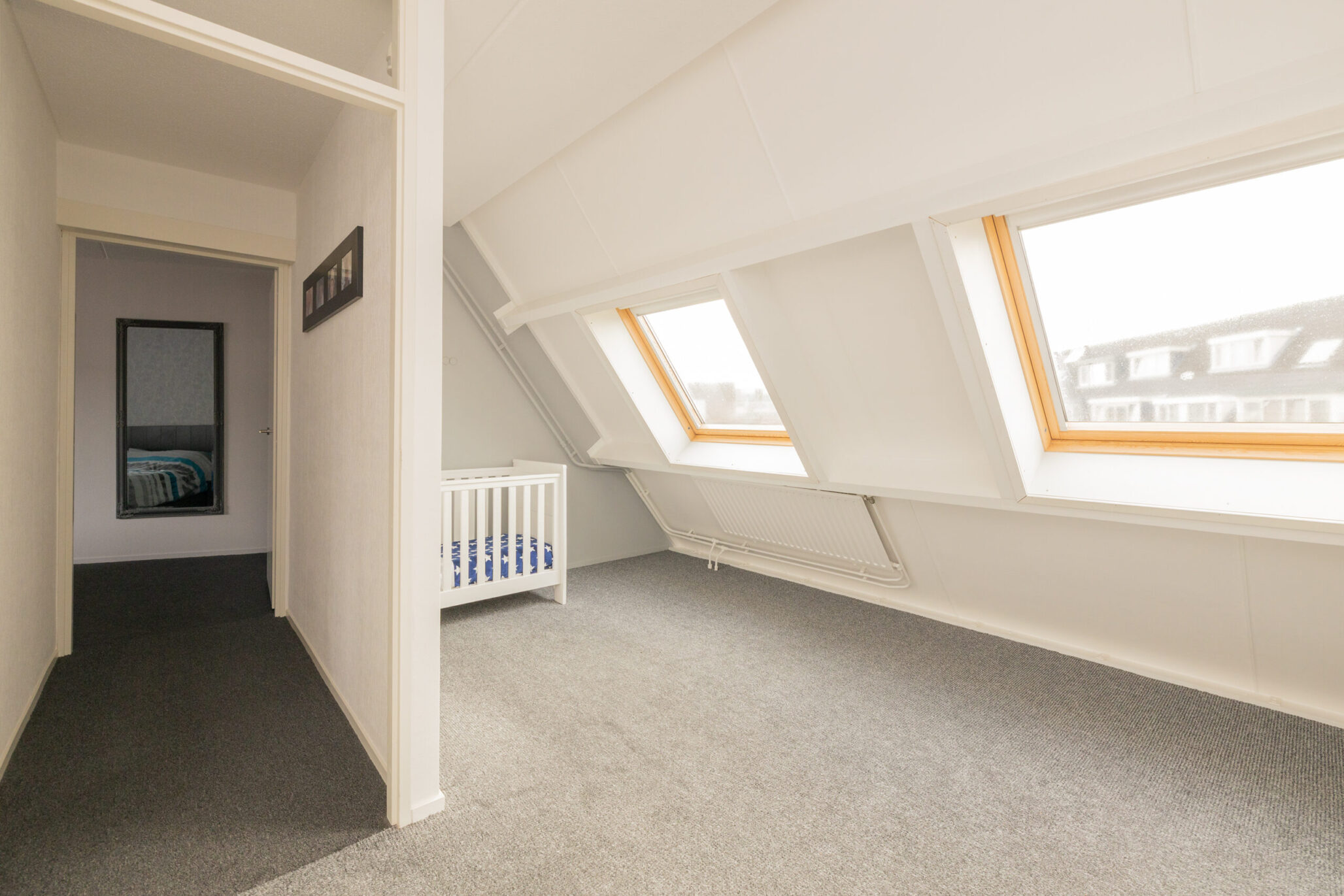 De bovenste verdieping is bereikbaar via een vaste trap en biedt een ruime zolderkamer/slaapkamer, die ook uitstekend te gebruiken is als werk- of hobbyruimte. De ruimte is netjes afgewerkt en voorzien van vloerbedekking, wat bijdraagt aan een warme uitstraling, en beschikt over een dakraam dat zorgt voor prettig daglicht.